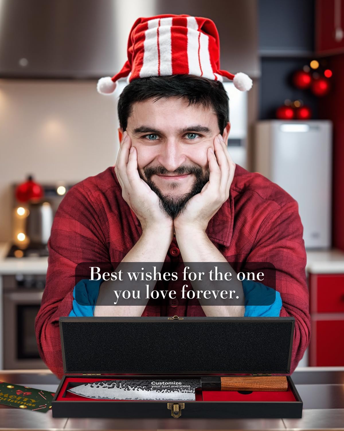 - Personalized: Customize this high-quality japanese chefs knife according to your preferences and needs, premium wooden box and various card options available. Making it a meaningful personalized gift suitable for any occasion
