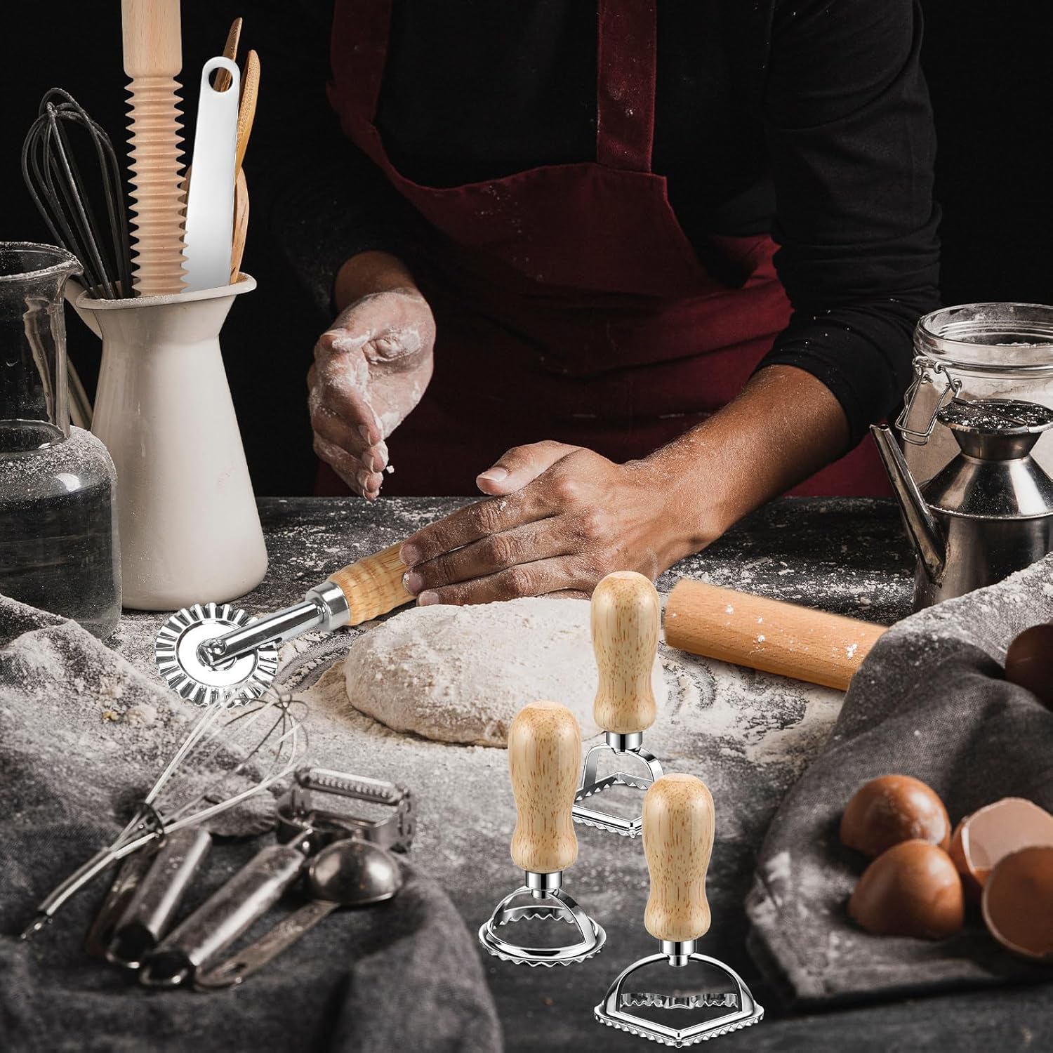 - Versatile Applications: The pasta and dumpling-making set is a multifunctional kitchen companion, ideal for a wide range of culinary creations. From dumplings, noodles, and pasta to cakes, pies, and cookies, this set is perfect for households, restaurants, hotels, and more. Whether preparing a family dinner, a festive feast, or hosting a party, this all-in-one kit boosts your cooking efficiency and creativity.