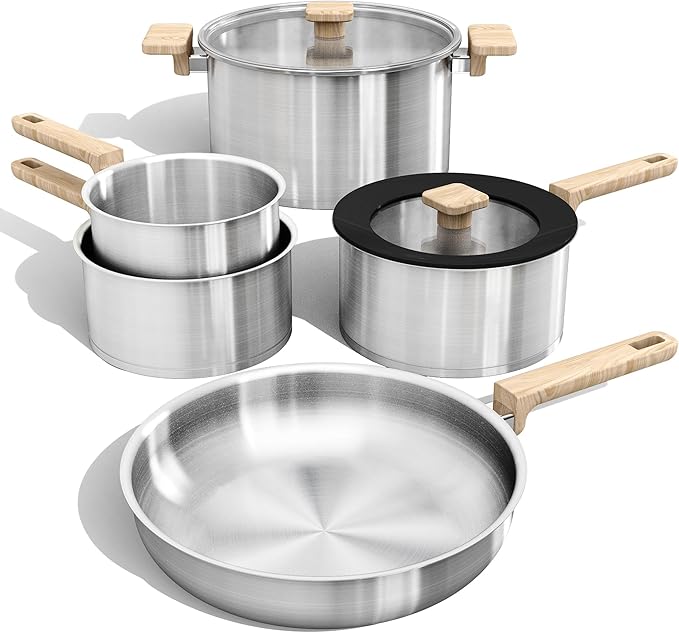 - Made from food-grade stainless steel and free from harmful coatings and chemicals, this set provides an environmentally responsible cooking experience without releasing unwanted substances.