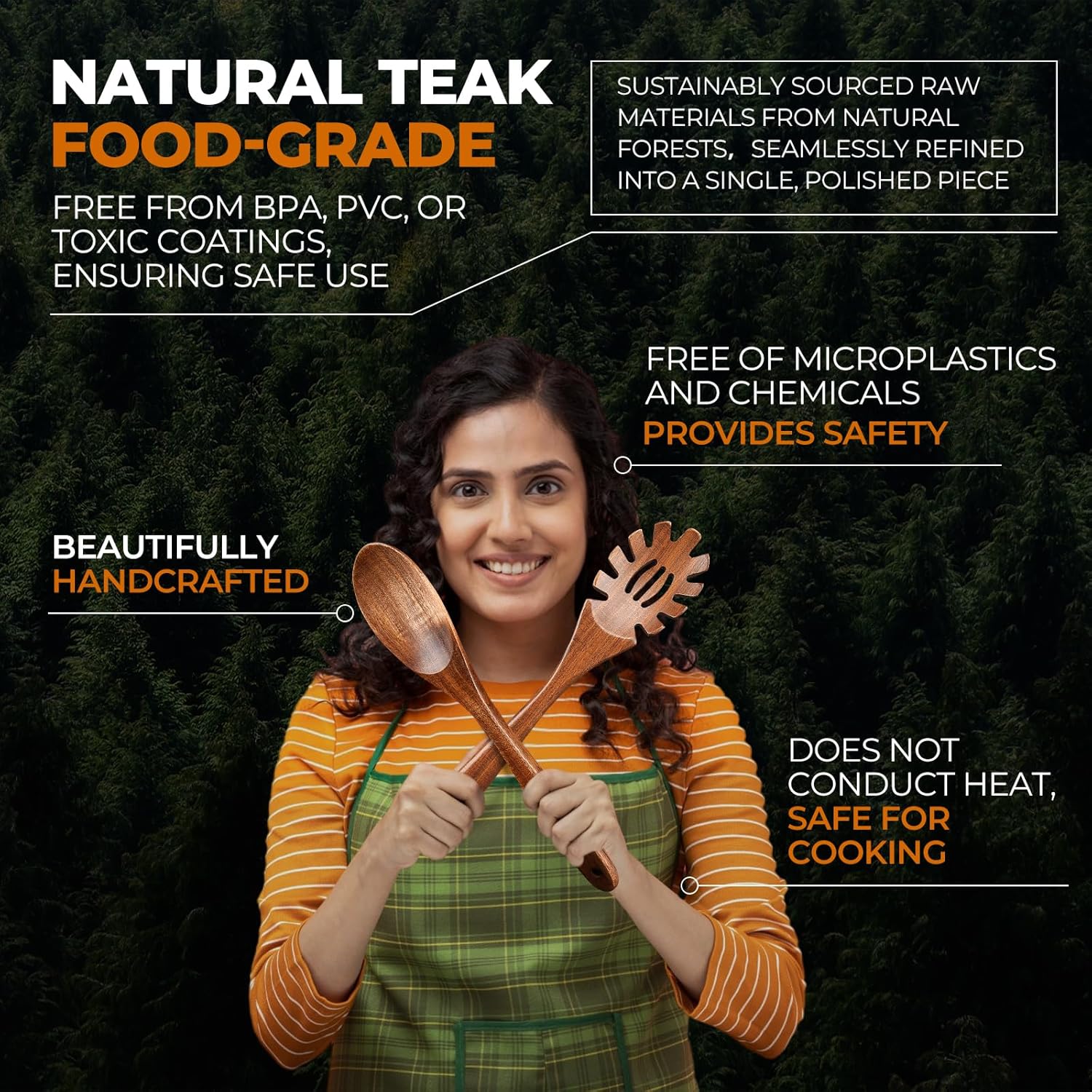 - BPA-Free and Healthier: We prioritize health and safety, ensuring our Teak Wood Utensils are BPA-free. This commitment extends to using natural materials that are not only better for your family's health but also a sustainable choice for the environment