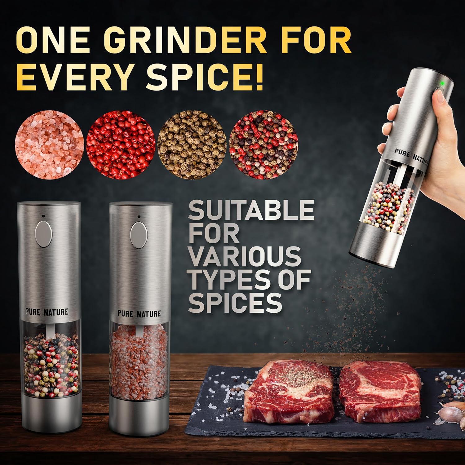 - Convenient LED Light: The built-in LED light in our electric pepper grinder ensures accurate seasoning even in low light. Ideal for dinner parties, this rechargeable salt and pepper grinder set is a must-have for kitchen essentials.