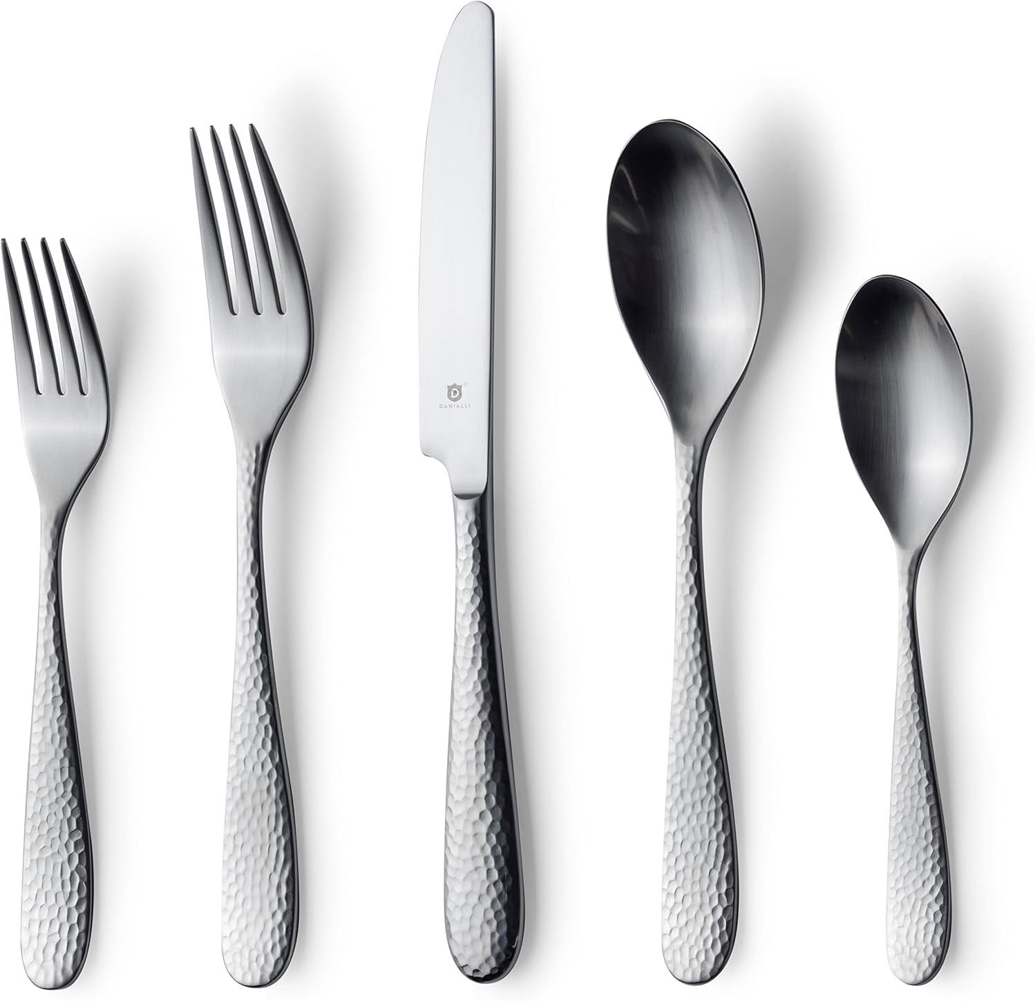 - Balanced Style for Any Setting: With its matte finish and textured hammer pattern, this flatware effortlessly bridges classic and contemporary styles, complementing everything from rustic stoneware to fine porcelain.