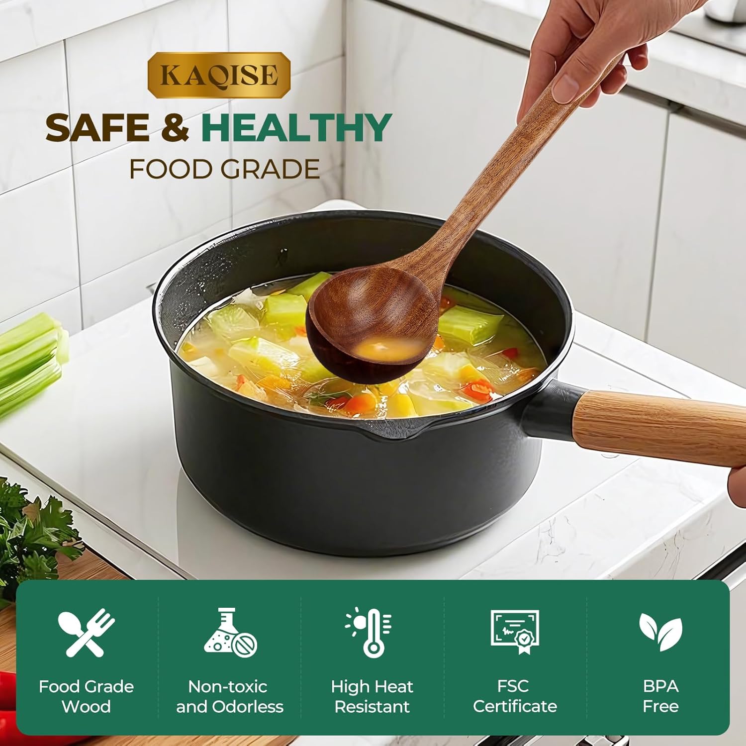 - 【Perfect for Soup and Pasta】This Wooden Cooking Utensil Set includes a Wooden Ladle and Wooden Pasta Spoon, ideal for serving soups, pasta, and other delicious dishes. The long handles provide comfort and control, making them versatile and perfect for all your cooking needs.