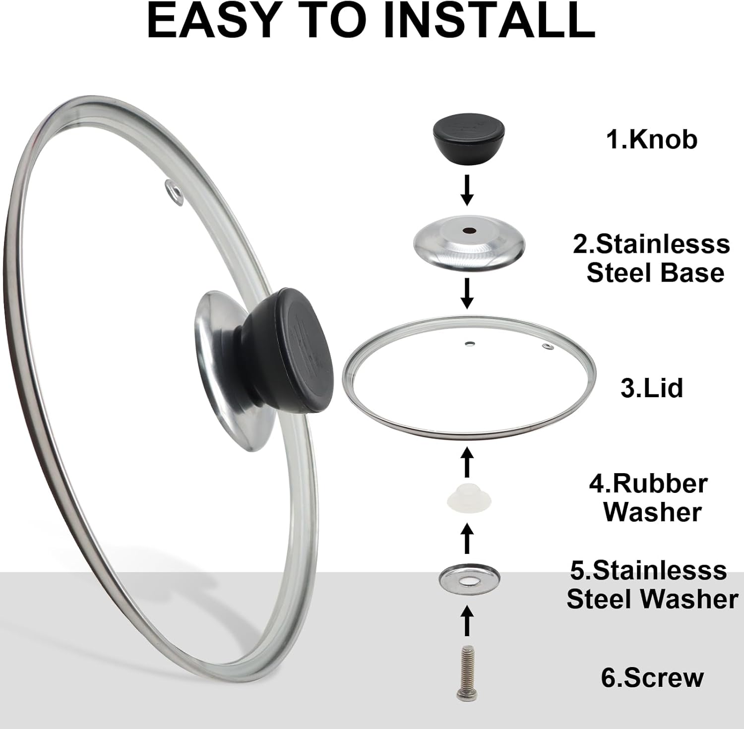 - Oven and Dishwasher Safe: Round tempered glass pot lids can withstand temperatures up to 400°F and can be easily used in the oven, high quality tempered glass won't break easily even under high temperatures, whether it's braising, sautéing or frying, our pot lids can enhance your cooking experience. The smooth surface of the lid makes it very easy to hand wash or dishwasher safe.