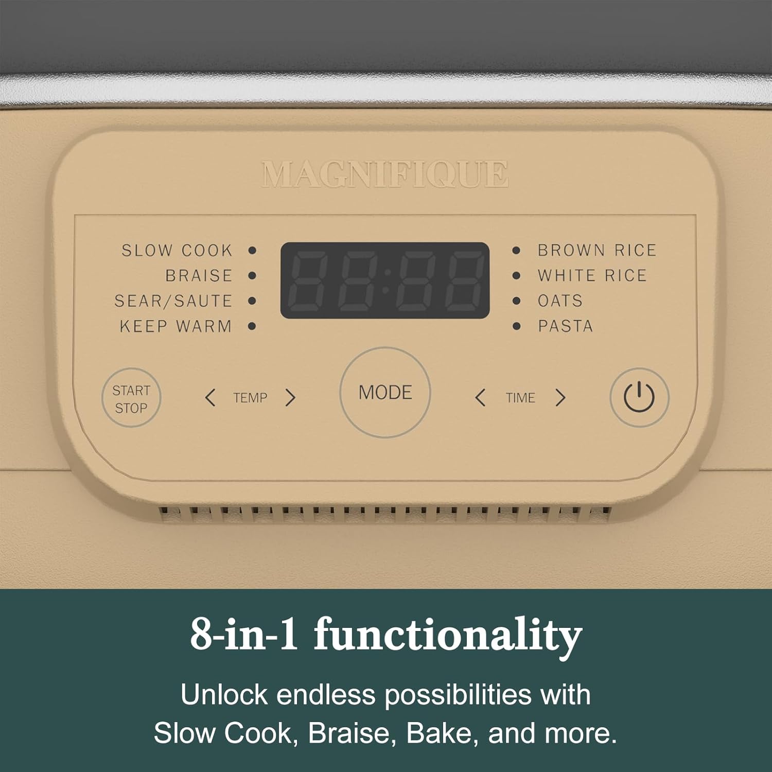 MAGNIFIQUE 6 Quart Multi-Cooker, with 8-in-1 Casserole Programmable Slow Cooker, Dutch Oven, Pasta, Nonstick, Oven Safe Pot to 500°F Brown Sugar