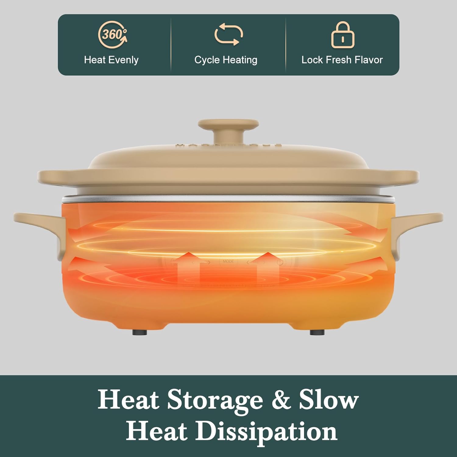 - Versatile cooking pot:Heat-resistant porcelain liner is microwave or a oven safe up to 450°F. In addition, ceramic nonstick coating, free from PFAS, PFOA, PTFE, lead, and cadmium, ensures a safe and easy cooking experience.