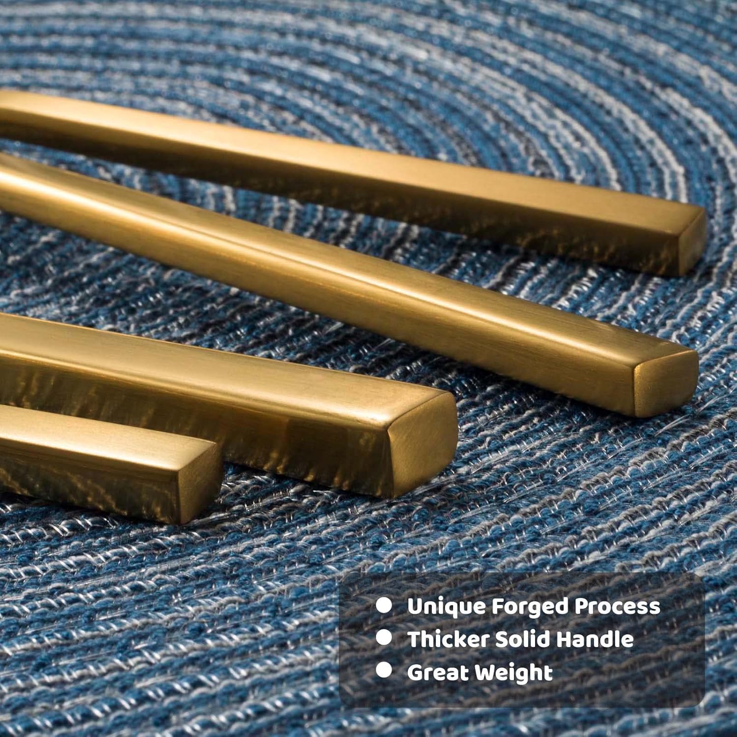 Alata Cube Gold 45-Piece Flatware Set, Forged Cutlery Set, Matte Gold Silverware Service for 8, Stainless Steel Tableware with Square Handle for Home/Restaurant, Dishwasher Safe
