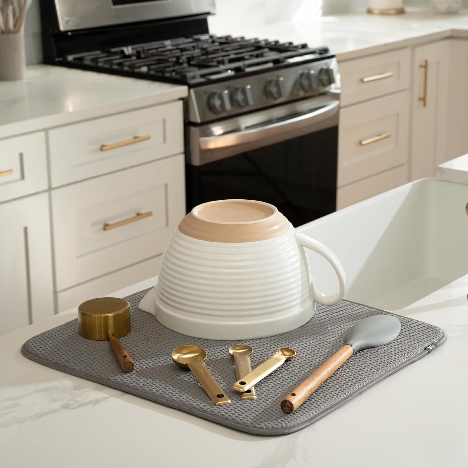 - Dish drying mats for kitchen counter are reusable, machine washable, and easy to store for kitchen organization; durable construction will not chip or break like a stone dish drying mat for kitchen