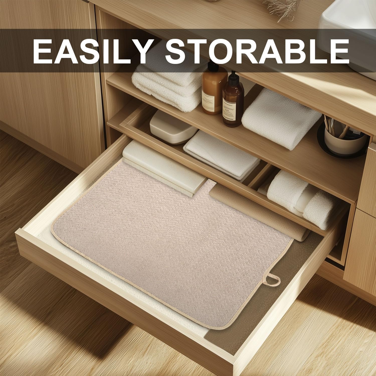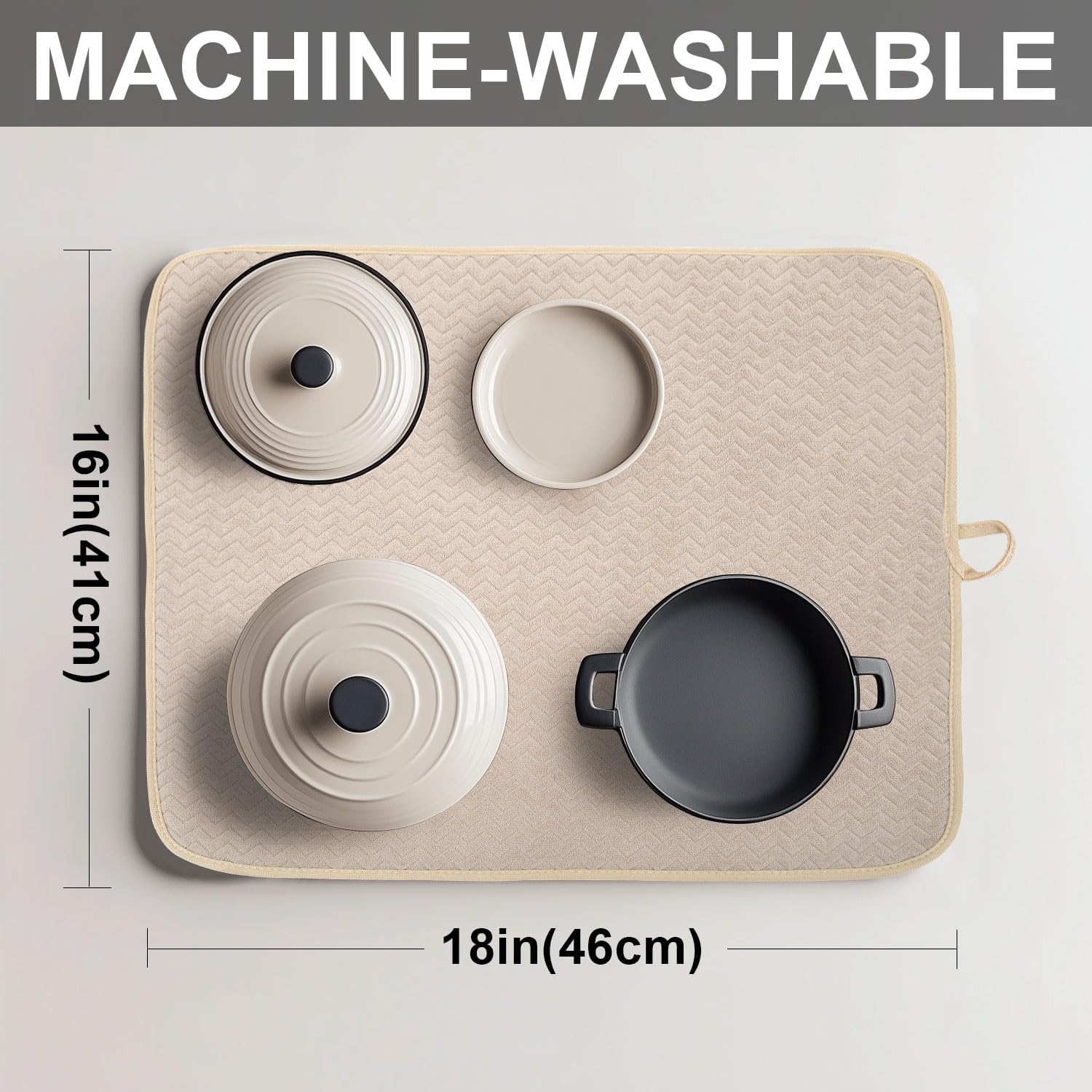 Dish Drying Mat, Highly Absorbent Microfiber Kitchen Counter Mat Value Pack, Dish Drying Pad for Dishes, Utensils, Pots and Pans, Large 16" x 18", Khaki
