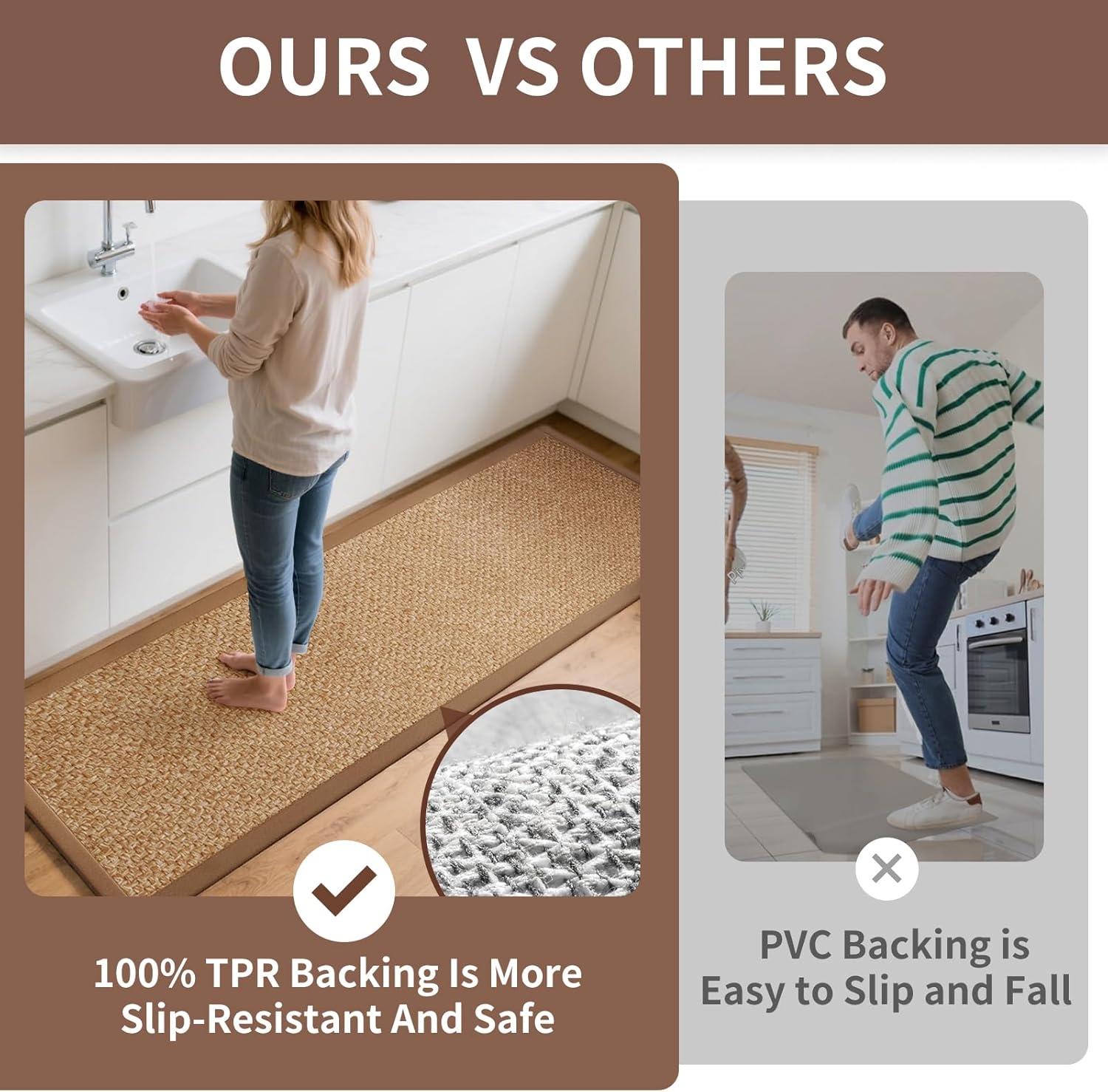 - Soft & Comfortable Weaved Surface: YDKGL kitchen mats feature a soft jute woven surface that is thick and delicate, and will feel cozy and soft when you step on it. Our rubberized jute woven kitchen mats provide comfort for your feet and let you enjoy your cooking time.