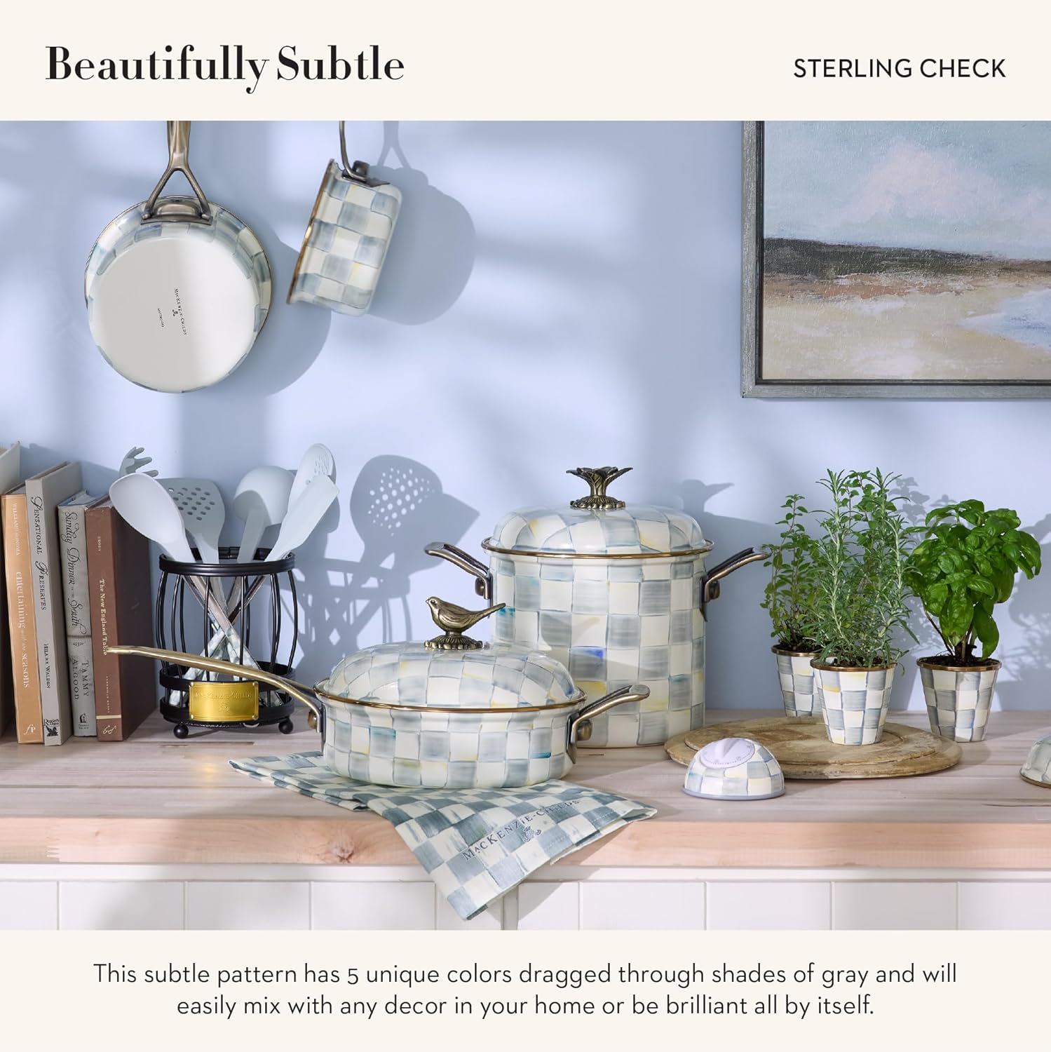 MACKENZIE-CHILDS Kitchen Ladle, Silicone Ladle Spoon for Cooking, Gray-and-White Sterling Check