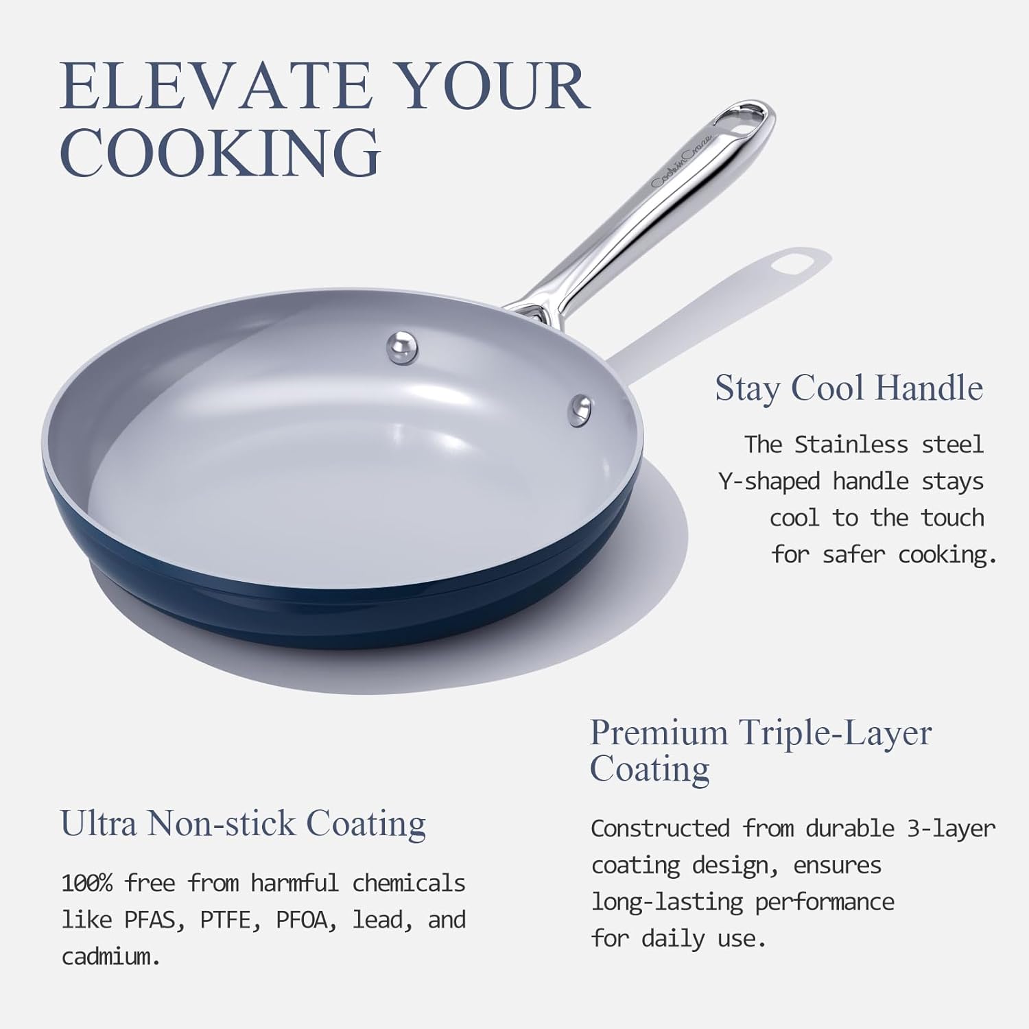 - ๐ญ๐ฌ๐ฌ% ๐๐จ ๐๐๐ซ๐ฆ๐๐ฎ๐ฅ ๐๐ก๐๐ฆ๐ข๐๐๐ฅ๐ฌ & ๐ก๐ผ ๐ฃ๐๐๐ฆ/๐ฃ๐ง๐๐/๐ฃ๐๐ข๐ - Superior to Teflon Pans: Crafted with 3X Durable Ceramic Coating, our 8-inch nonstick frying pan is 100% free from PFAS, PTFE, PFOA, lead, and cadmium. Healthier cooking with 50% less oil โ perfect for eggs, pancakes, or grilled cheese. Proven Safety: 800+ lab tests ensure zero chemical release even at 500ยฐF.