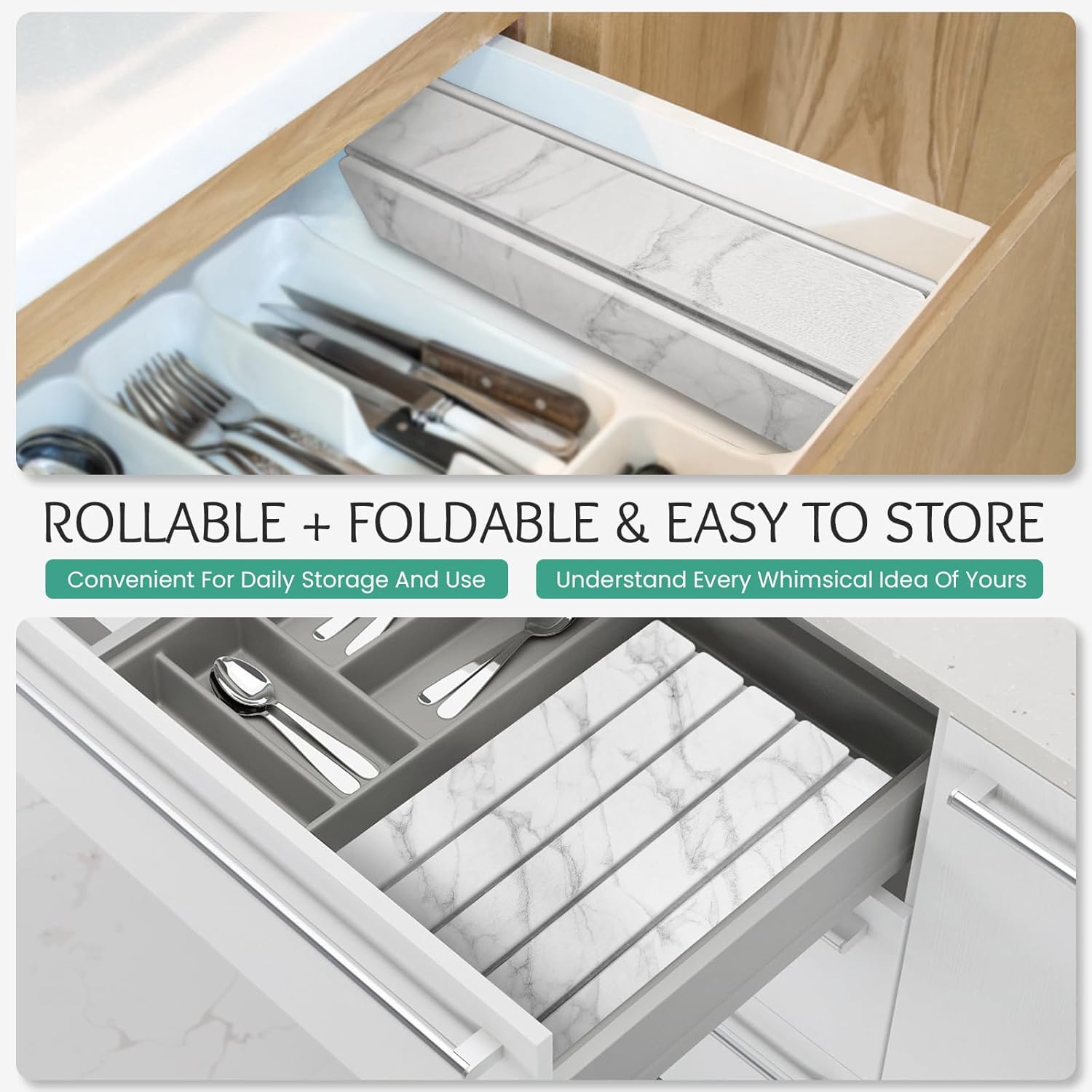 - 【Foldable & Rollable Design】: The drying mat what we designed is foldable and rollable,efficiently helping you achieve the idea of convenient storage.When not in use,can be folded or rolled up and placed in kitchen drawers,cabinets,clothing drawers etc;when during use,its large size provides spacious space for the tableware,cookware,cups etc.It comes with PVC anti-slip pad that can be used together to achieve double-sided anti slip and double safety.Our dish pads for drying to enables your kitchen countertops to be clean and organized.