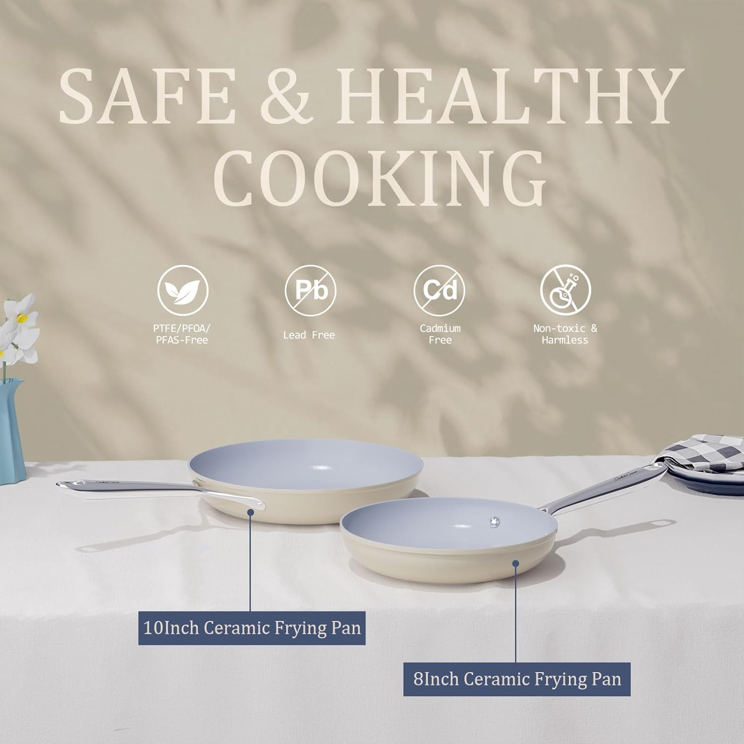 Nonstick Ceramic Frying Pan 10 Inch for Induction Cooktop - Non Toxic, PTFE/PFOA/PFAS Free, Oven & Dishwasher Safe up to 500ยฐF - Non Stick Small Skillet with Stay-Cool Handle - Cream