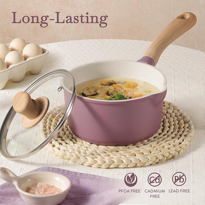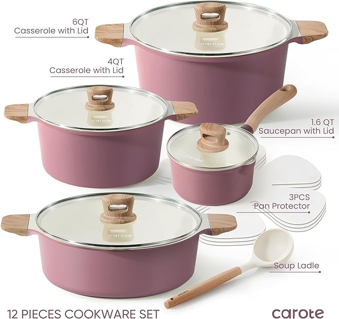 CAROTE 12 Pcs Pots and Pans Set Nonstick, Ceramic Cookware Set, Induction Cookware Non Stick Kitchen Cooking Set with Utensil and Pan Protectors, Purple