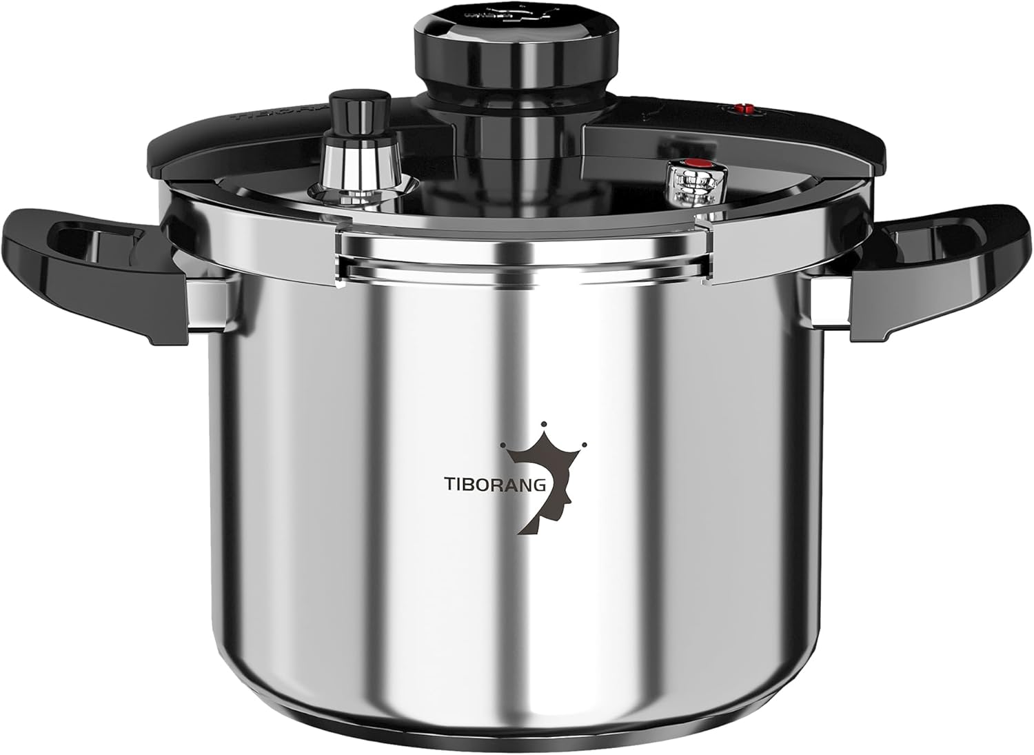 TIBORANG 8.5 QT Stainless Steel Pressure Cooker, [Multi-Cooker for Gas & Induction Stove] [Saves 70% Cooking Time] [One-Hand Operation], Family Size for 3-5 People, Olla de Presion