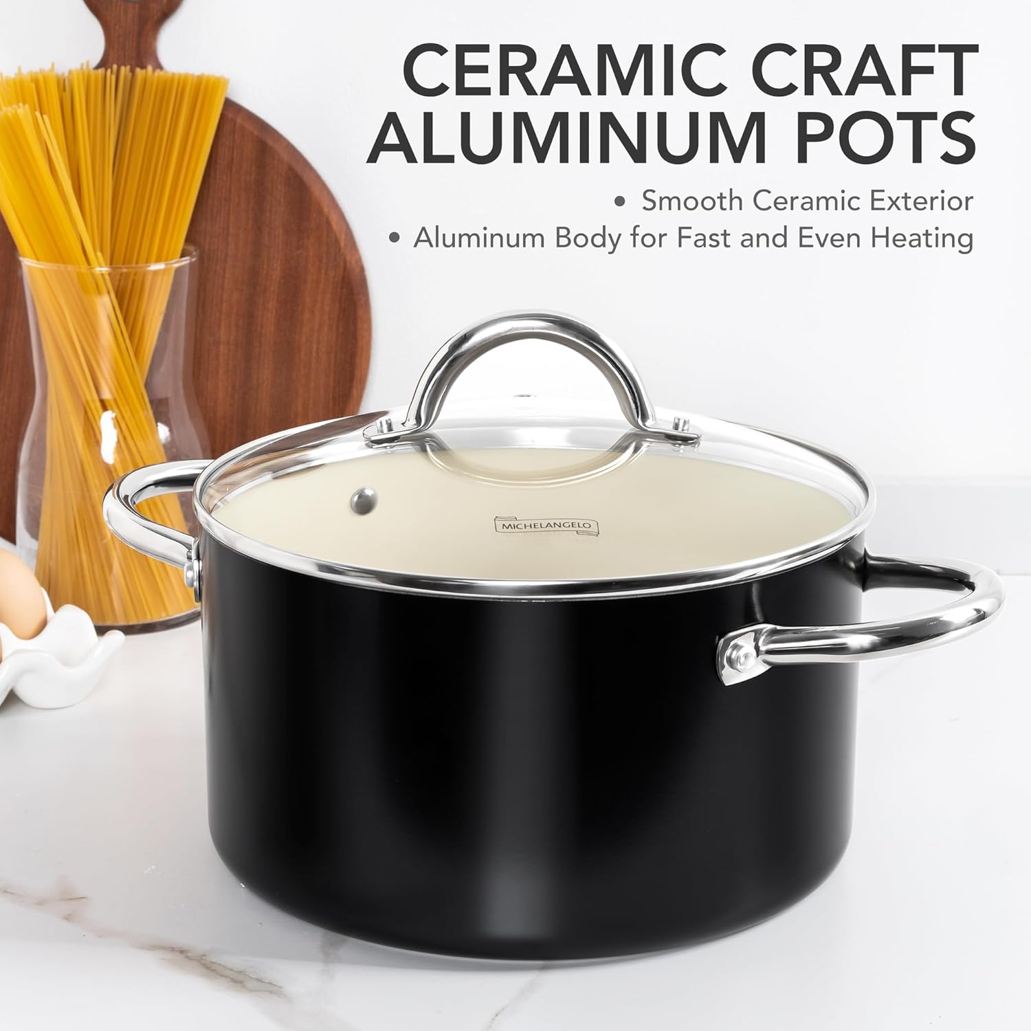 MICHELANGELO Stock Pot with Lid, 6 Quart Cooking Pot with Ceramic Coating, Nonstick Ceramic Soup Pot with Lid, Induction Compatible - 6QT Stockpot, Black