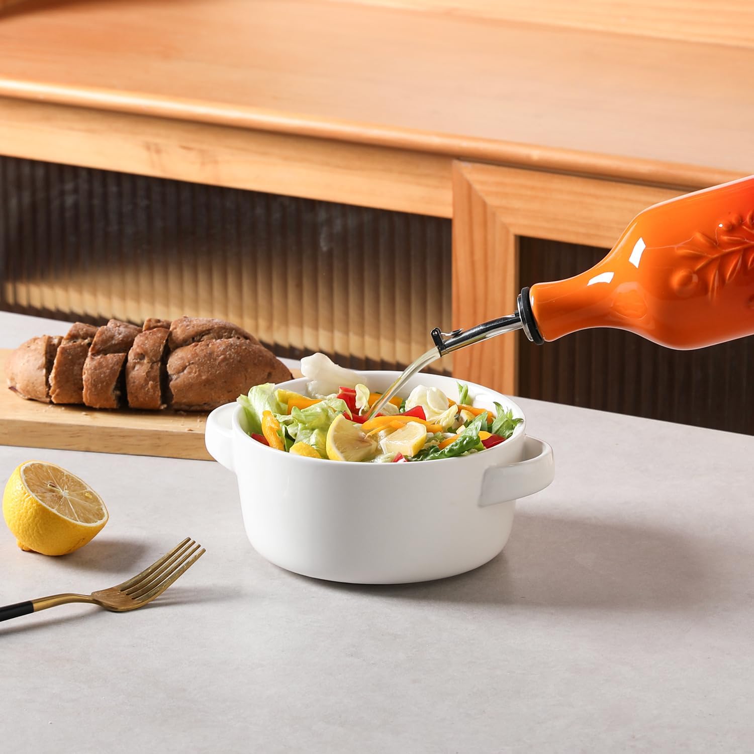 - Durable and Precise Pouring Control - The olive oil bottle fired at high temperatures, to form a smooth glazed surface, strength and durability. The carefully designed spout that allows for easy pouring without any messy drips or spills.