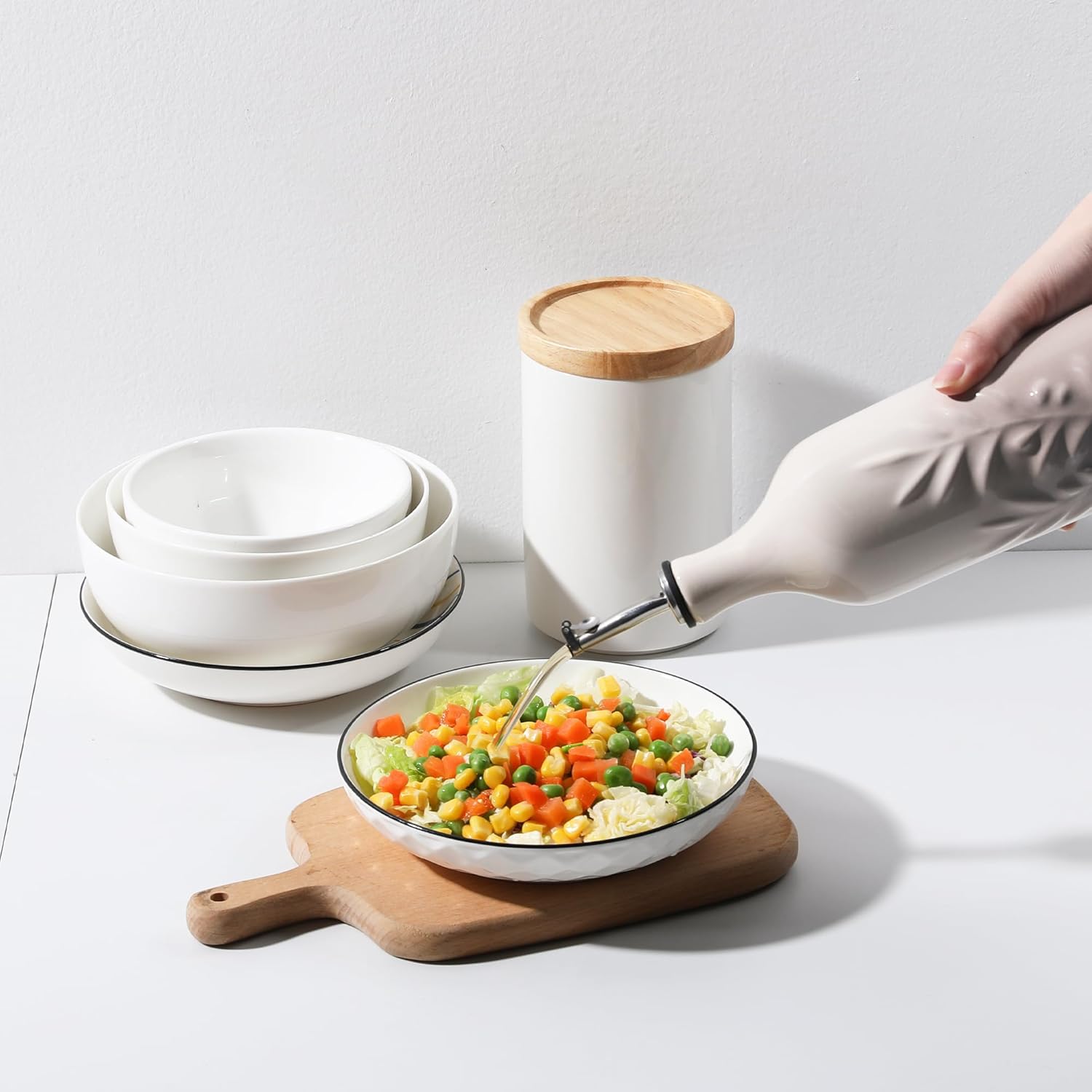 Sweejar Ceramic Olive Oil Dispenser Bottle, 24 Oz Relief Opaque Oil Cruet Protects To Reduce Oxidation, Suitable for Storage Soy Sauce, Coffee Syrup, Liquids, Set of 1 (Gradient FogGray)
