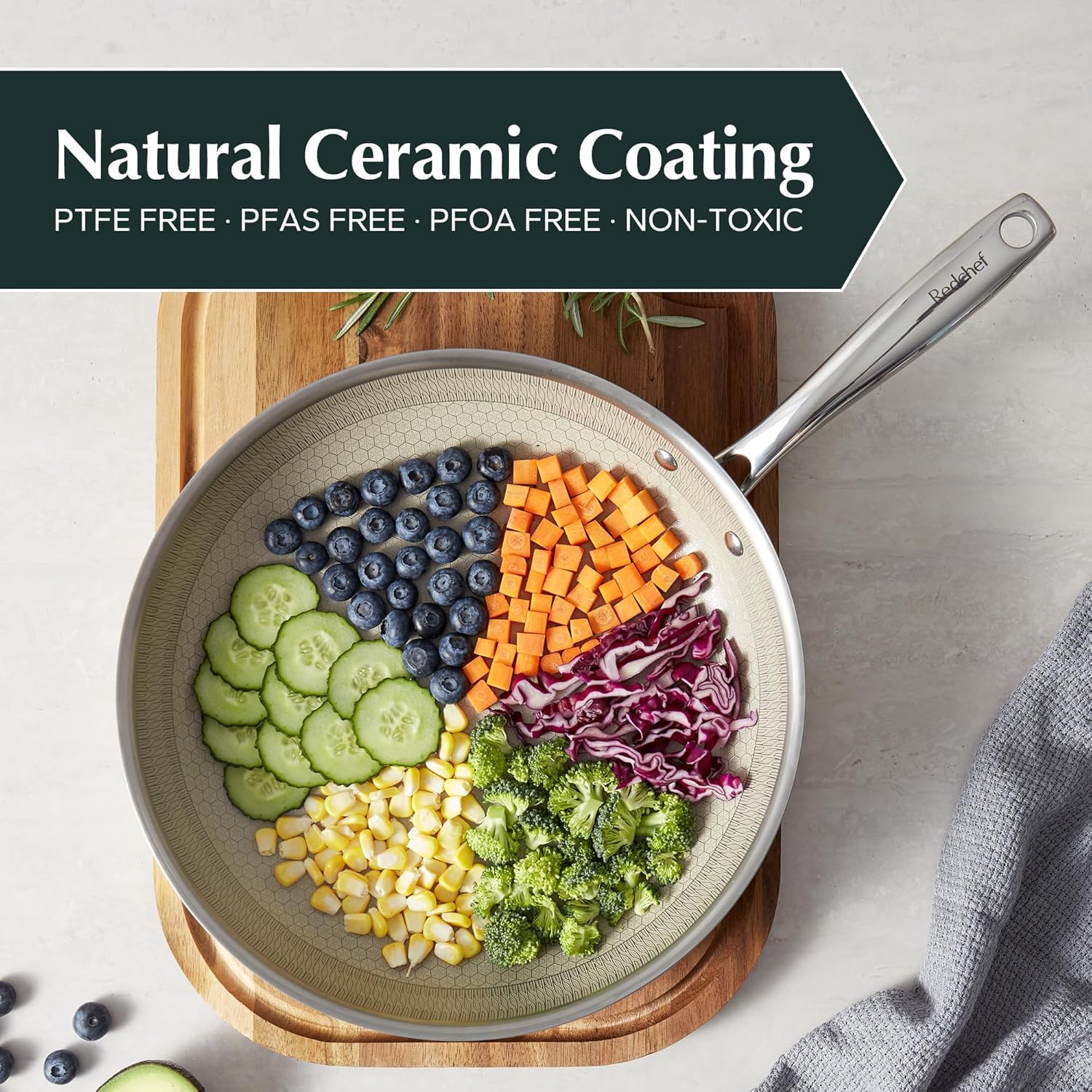 Redchef Non Stick Frying Pans, Hybrid 10 Inch Ceramic Frying Pan, Tri-Ply Stainless Steel Skillet, Non Toxic, PFAS PFOA & PTFE Free, Dishwasher & Oven Safe, Compatible with All Cooktops