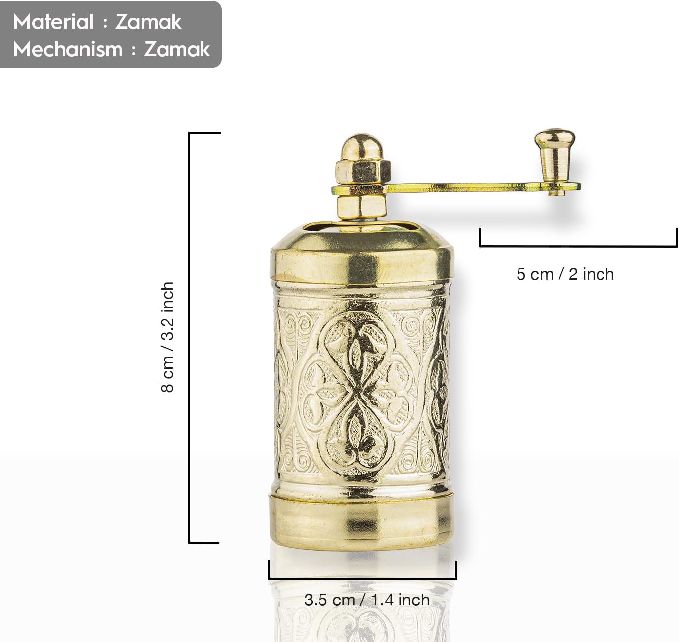 Decorative Handmade Black Pepper Grinder, Refillable Turkish Spice Mill with Adjustable Coarseness, Manual Pepper Mill with Handle, Spice Grinder with Hand Crank 8 cm-3.1 inch