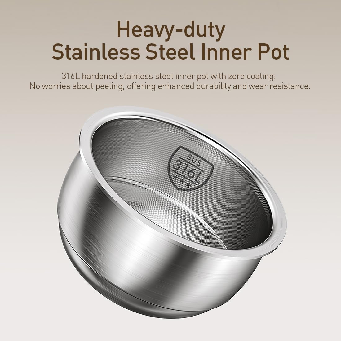 - Healthy and Durable Stainless Steel Inner Pot: The Joydeem DFB-D300 Rice Cooker features a 316L stainless steel inner pot that is more wear-resistant and built to last. The coating-free design ensures no worries about peeling, making it safe and healthy—perfect for health-conscious families.