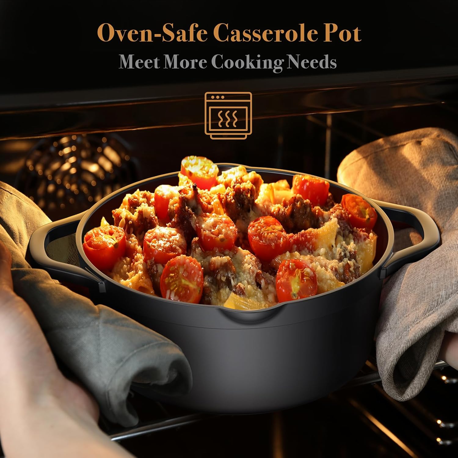 - Dual Pour Spouts: Say goodbye to messy spills! Our nonstick pots and pans feature two precision spouts for effortless, drip-free pouring—whether it’s sauces, soups, or excess oil. Designed for both lefties and righties, because everyone deserves a smooth pour!