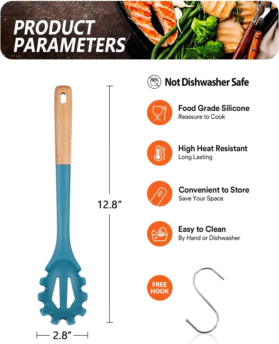 - Just Want To Provide The Best For You : The soft food-grade silicone head is designed for noise-free cooking. Unique sawtooth design, easy to pick up noodles. Whether it is used for stirring or serving spaghetti. Our silicone pasta fork will add more fun to your kitchen