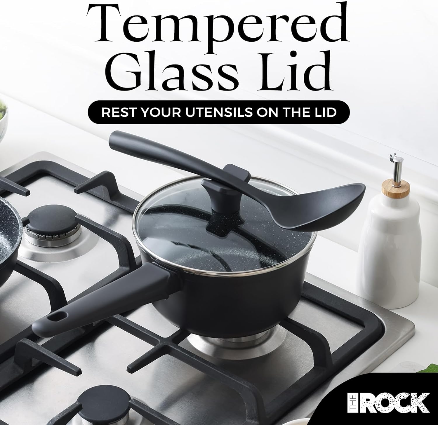 THE ROCK SOHO Nonstick Saucepan with Lid, 2 Quarts Small Pot with PPG Quantum2 Coating – Durable for Urban Kitchens, Nothing Sticks, Never Warps, Lasts Longer, Induction Compatible, PFOA-Free, Black