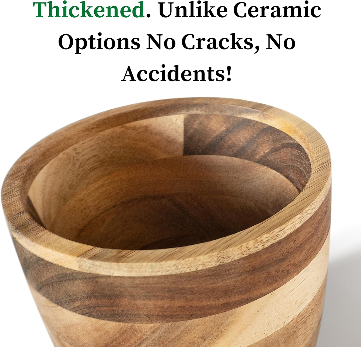 - Zero Plastic - Entirely Wooden Option: This acacia garlic pot dish bowl really looks and performs absolutely fabulously with natural materials. We chose a darker hard wood (acacia) as opposed to softer lighter woods.