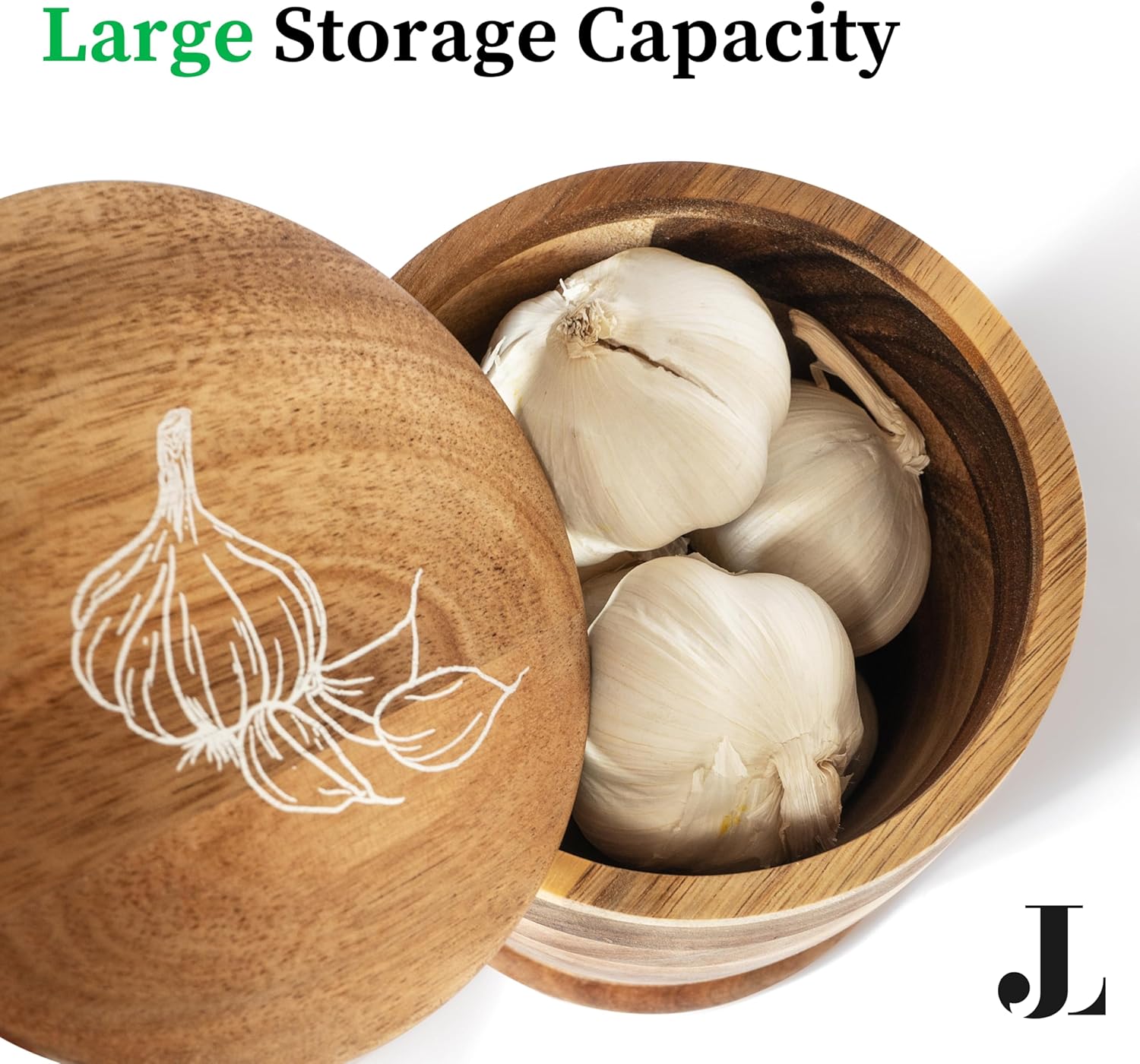 - Durable Wooden Design Unlike Fragile Terracotta & Ceramic Garlic Keepers: we noticed ceramic pieces are often nice looking options for storage containers but impractical. Simply lifting up and placing down can end up with cracks & chips or even worse a total break. Wood is a naturally durable and long lasting option.
