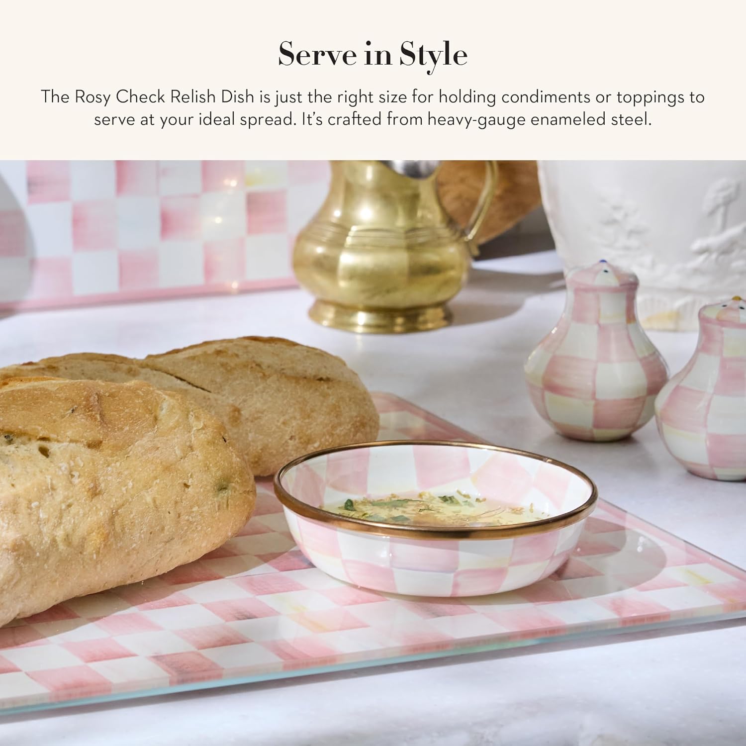 MACKENZIE-CHILDS Enamel Dipping Bowl, Small Serving Bowl for Entertaining, Pink-and-White Rosy Check