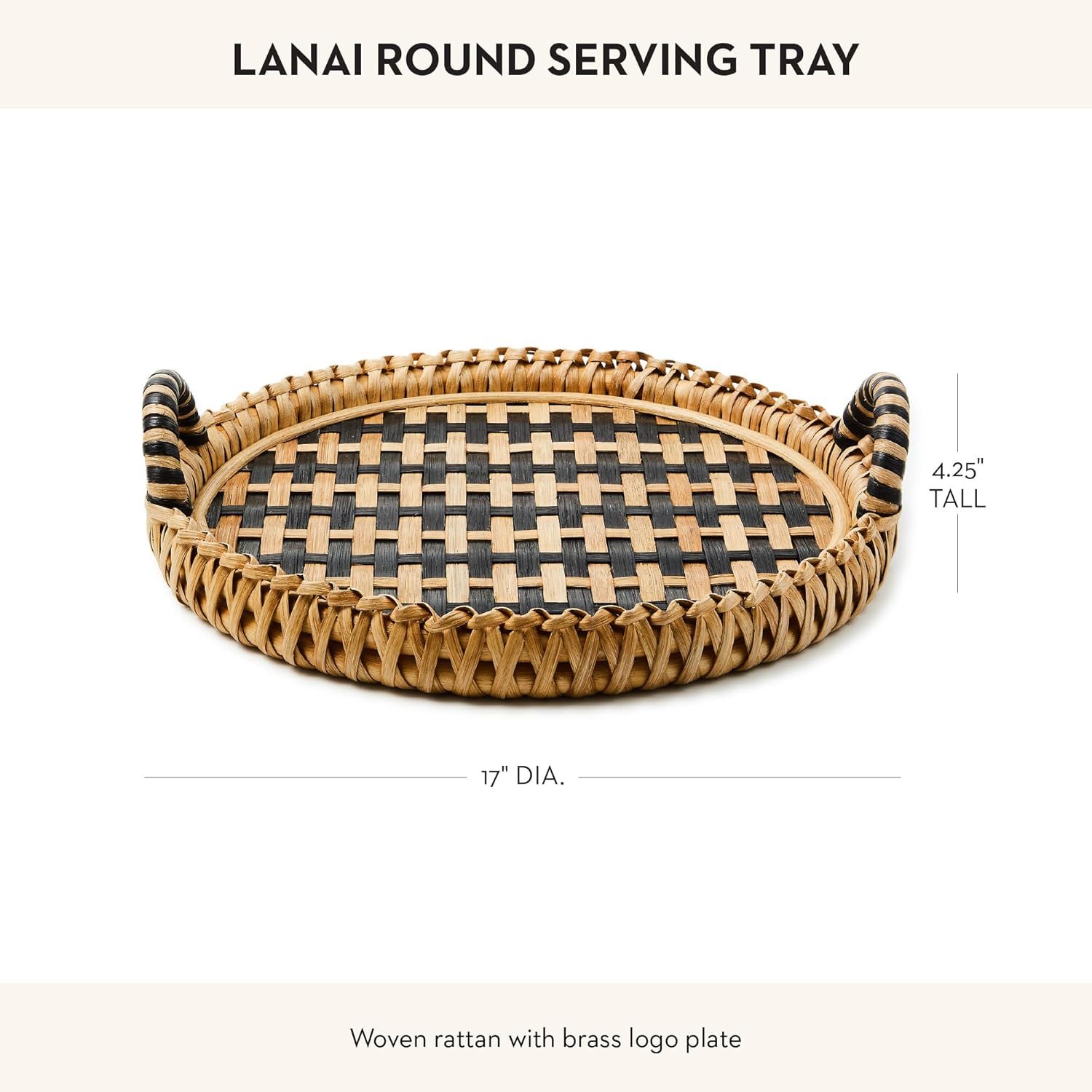 - UNIQUE ROUND TRAY WITH HANDLES: Our Lanai round tray with carrying handles makes any summer party a breeze. Handy as it is handsome, this fancy woven tray is ideal as an indoor or outdoor serving tray for year-round entertaining.