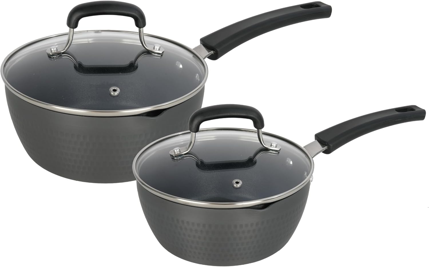 Nonstick Small Sauce Pan with Lid, 1.75 Quart and 2.4 Quart Sauce pan with Pour Spouts, Multipurpose Handy Little Saucepan with Stay Cool Handle, Small Pots for Cooking, Soups, Noodles, Milk