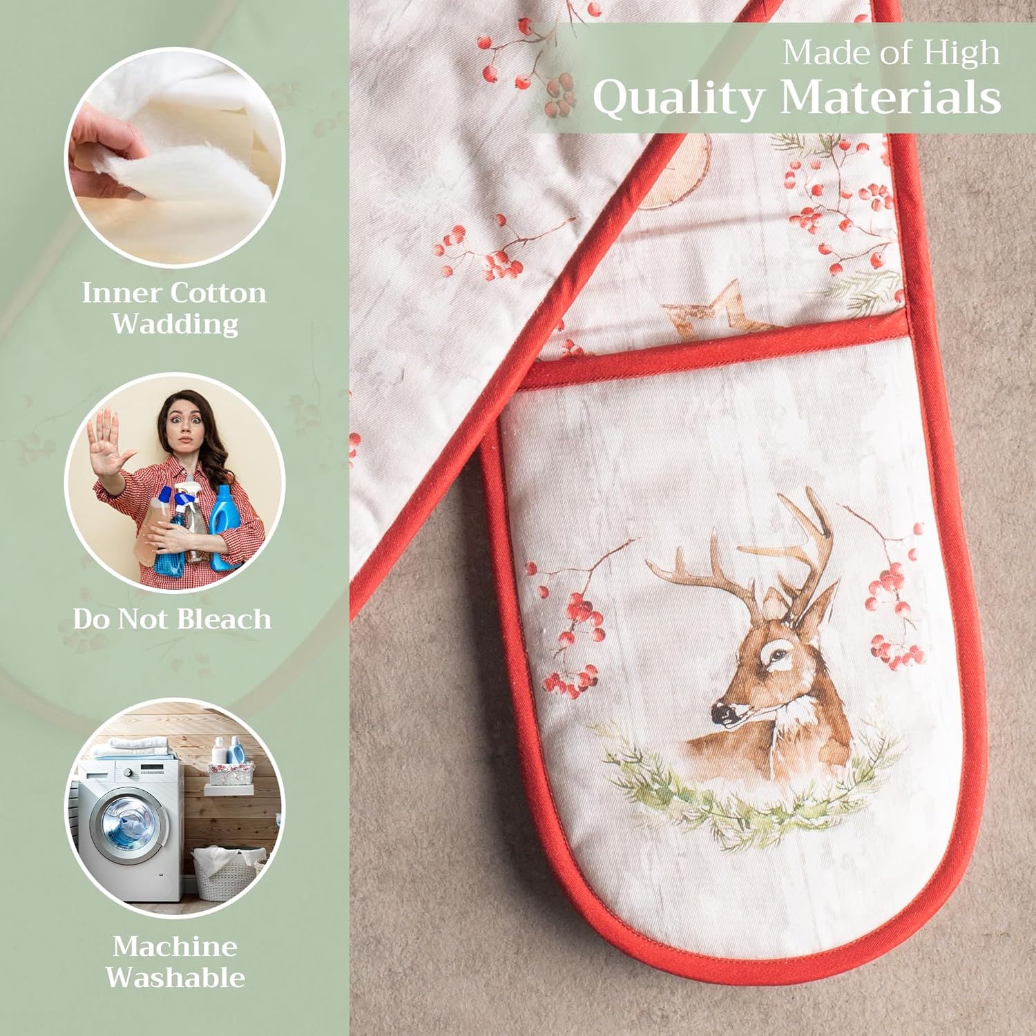 Maison d' Hermine Double Oven Mitt 100% Cotton Heat Resistant Cooking Gloves with Loop, Baking Barbeque, Handling Hot Pan, Mountain Life- Thanksgiving/Christmas (7 Inch x 35 Inch)