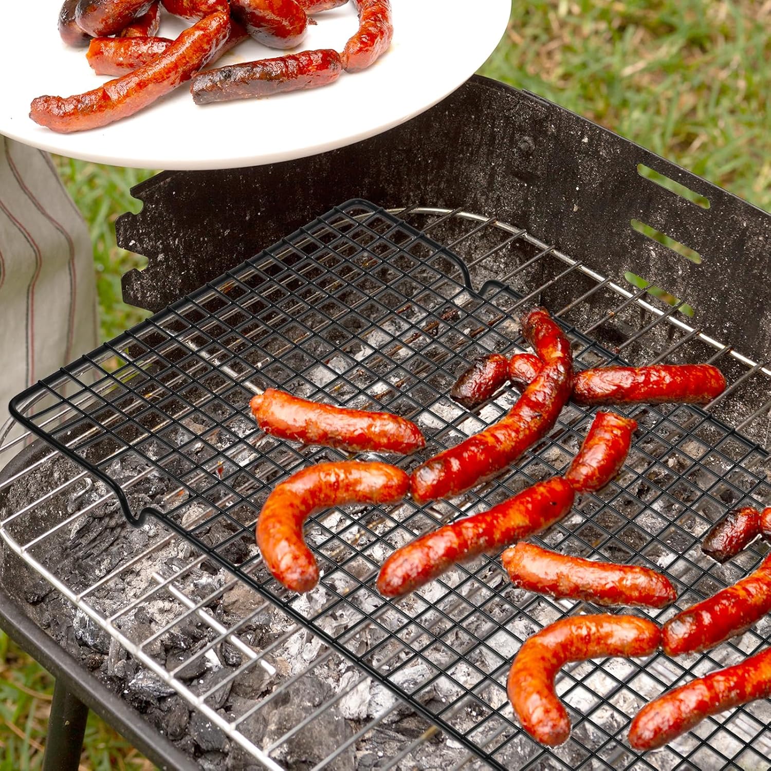 - 【Suitable size】Each cooling rack measures 40x25 cm (16x10 inches) with a grid distance of 15mm. The compact design is easy to store and carry without taking up too much space in the kitchen.