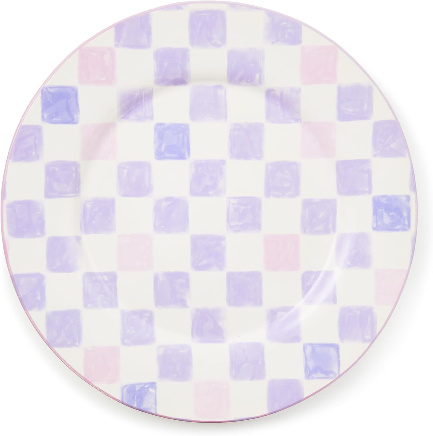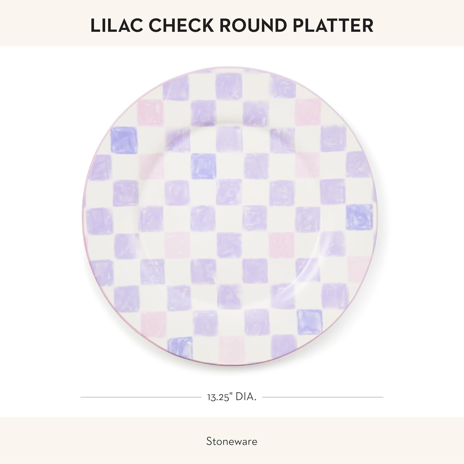 - SERVING ESSENTIAL: Create a fun table with this entrée or dessert platter. The Lilac Check round serving plate features hand-applied check transfers in purple and pink and is finished with a hand-painted rim.