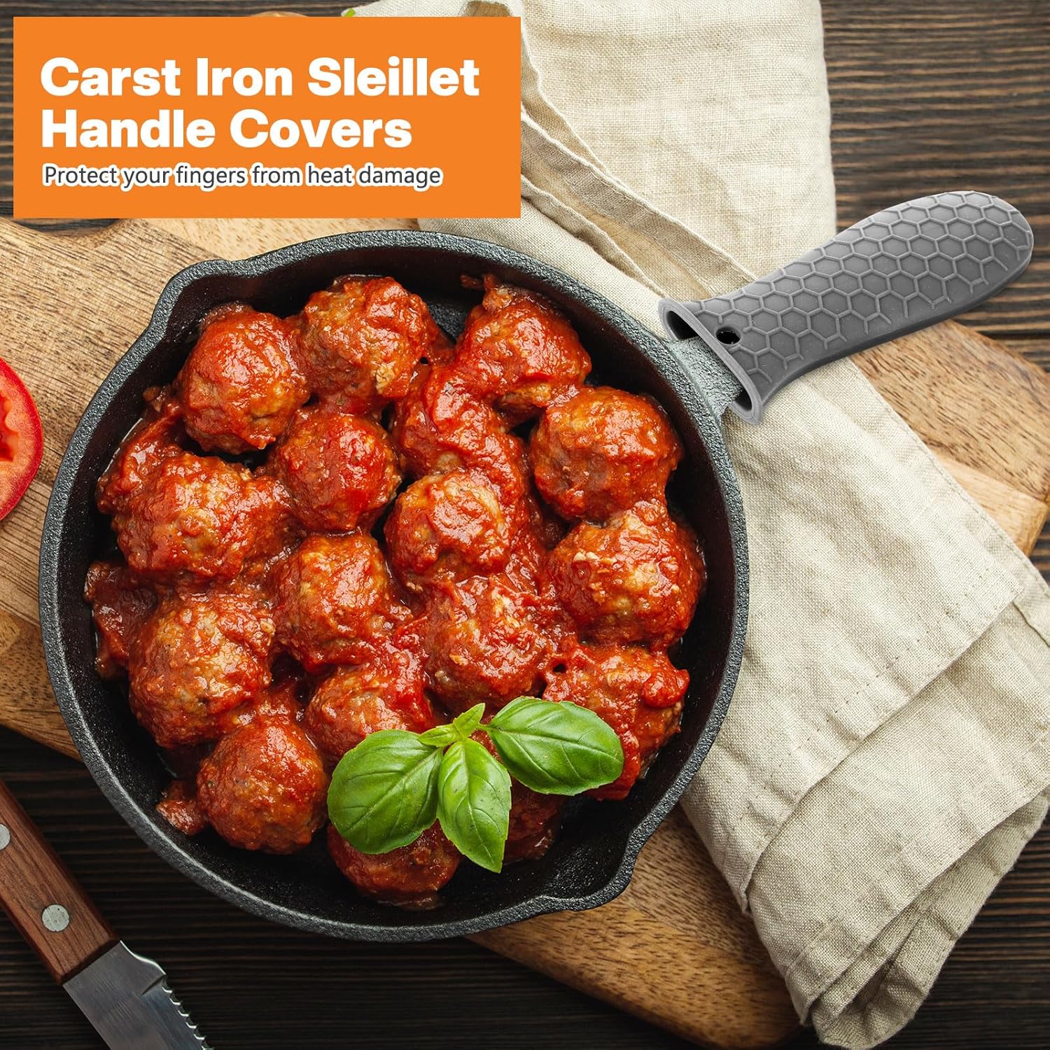 Patelai 8 Pcs Silicone Pot Holders Set Cast Iron Handle Cover Heat Resistant Pot Handle Covers Potholder Non Slip Reusable Pan Sleeve for Frying Pan Kitchen Supplies(Grey)