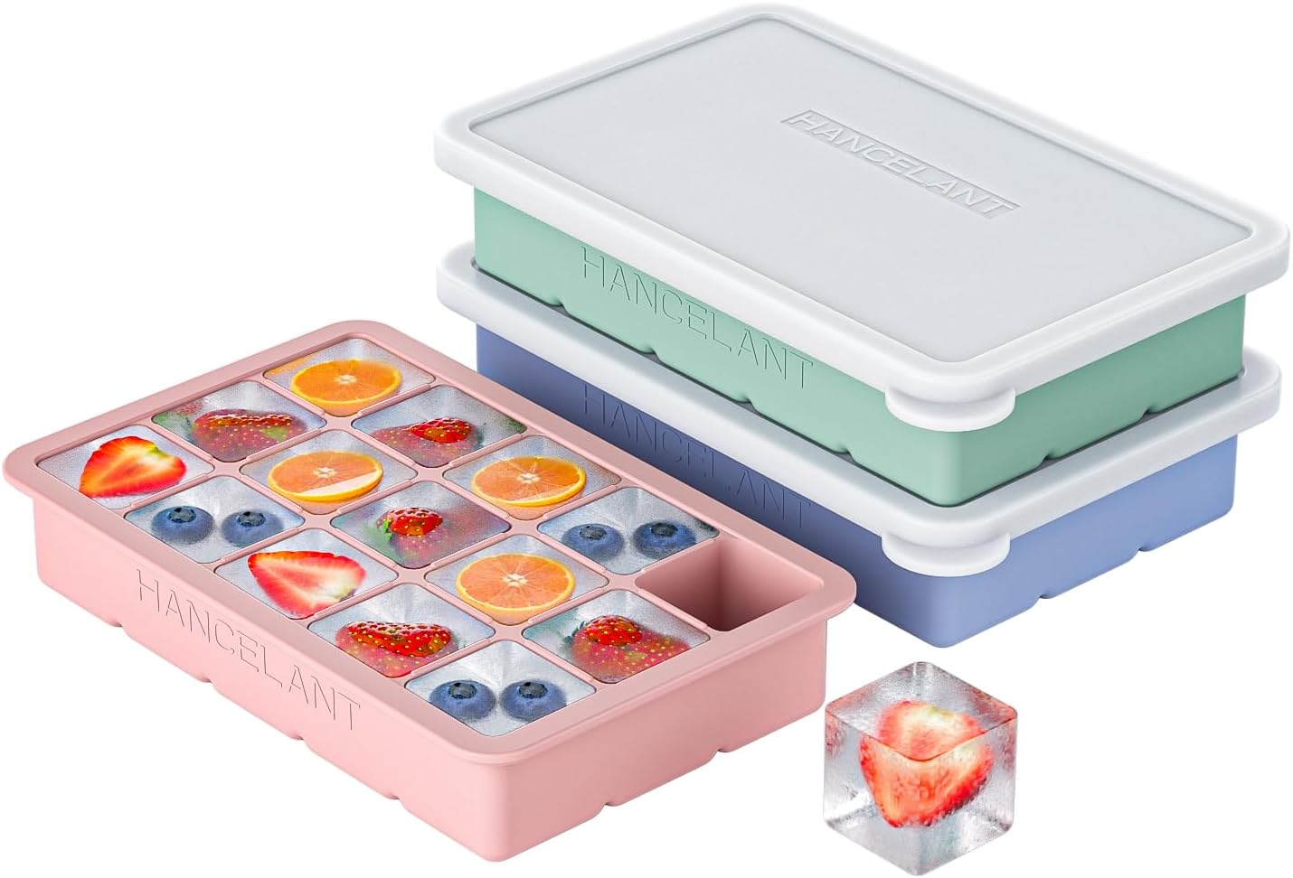 Silicone Ice Cube Tray 3 Pack, HANCELANT Ice Cube Mold, Ice Trays for Freezer with Lid for Whiskey, Baby Food, BPA Free, Easy Release