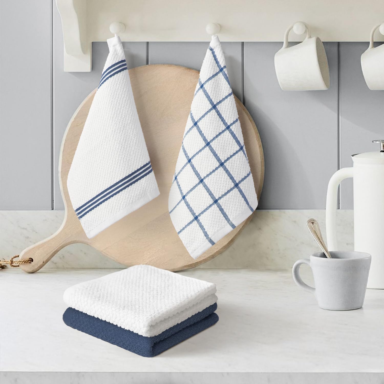Artoid Mode Ring Spun Cotton Blue Dishcloth Kitchen Towels, 12x12 Inch Ultra Soft Absorbent Quick Drying Household Cleaning Kitchen Rags Set of 4
