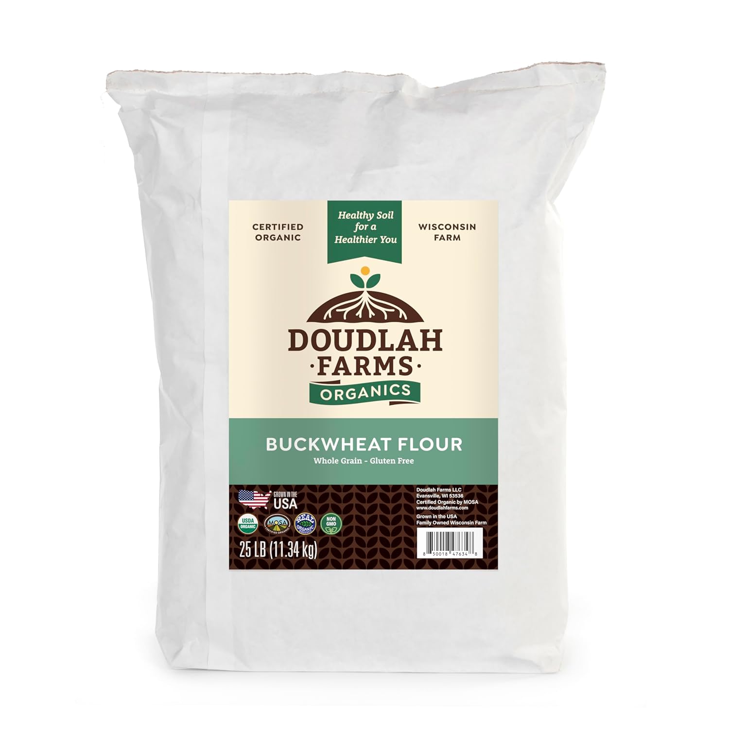Organic Buckwheat Flour 25 lb Bulk - Non-GMO, USDA Organic, Gluten Free, Vegan - For Baking Bread, Pancakes, and More! Grown In USA, Farmed From Regenerative Soil by Doudlah Farms