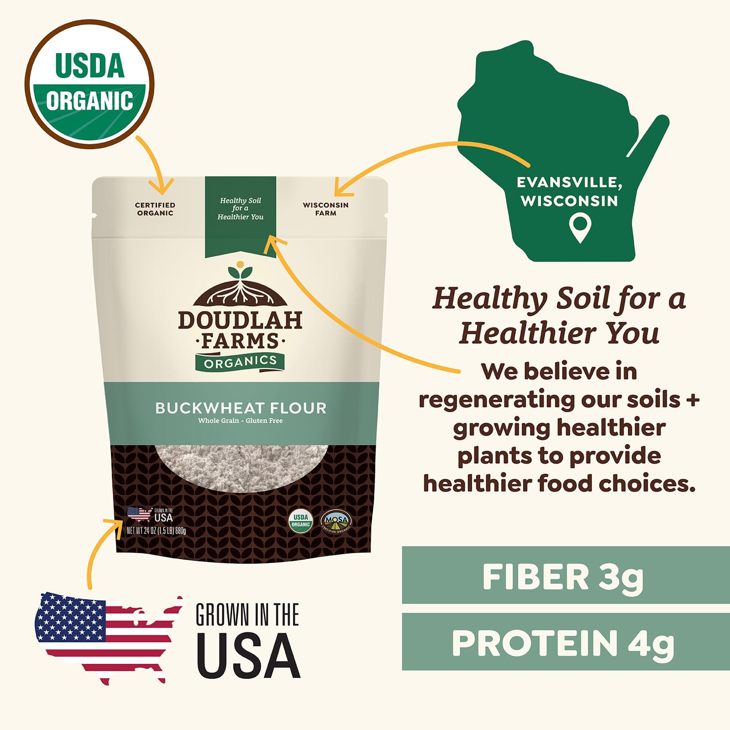 Organic Buckwheat Flour 5 lb - Non-GMO, USDA Organic, Gluten Free, Vegan - For Baking Bread, Pancakes, and More! Grown In USA, Farmed From Regenerative Soil by Doudlah Farms