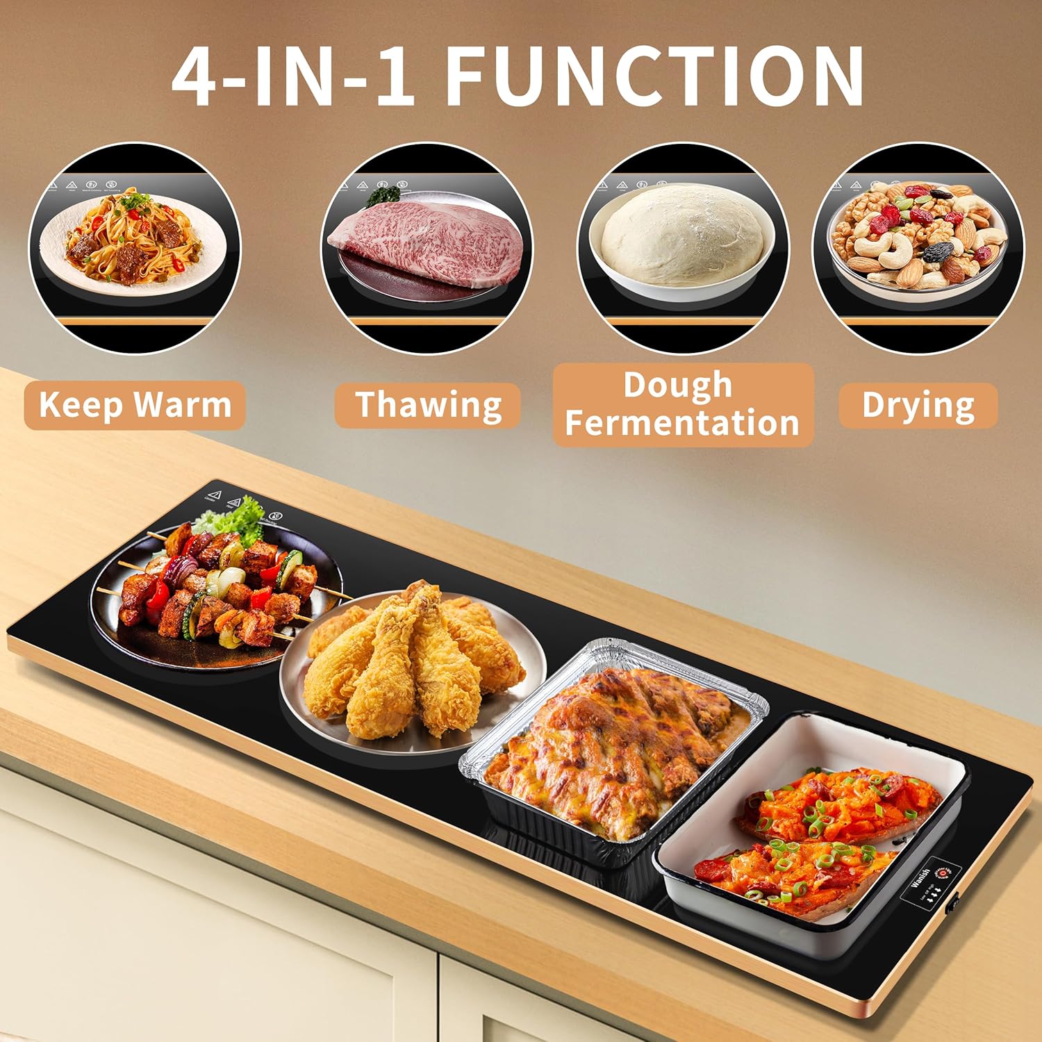 - Multi-functional Uses - Besides being used to keep food warm for party, the Wanish electric food warmer is also a multi-functional home helper. It has a range of functions, defrosting, promoting dough fermentation, drying, heating face masks, warming milk/wine/tea and more. The food warming mats for countertop can meet your various needs all year round and enhance your lifestyle on a daily basis, also a ideal choice for catering food warmers.