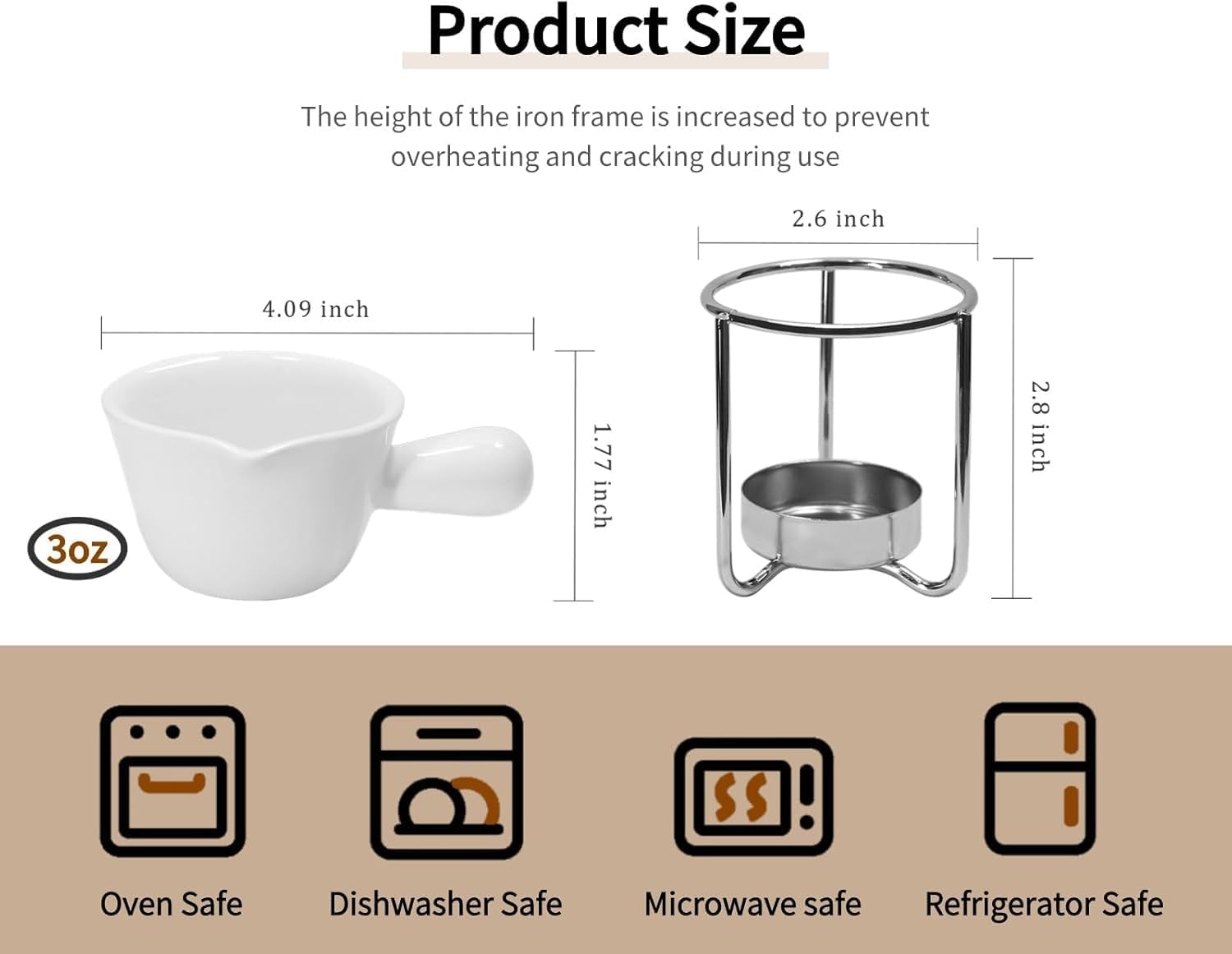 - 【Butter Warmers Pot Sets-Taller Metal Brackets】The drawn butter warmers includes 4pcs of ceramic butter warmers,4pcs of butter metal brackets,and 20pcs of tea light candles. The diameter of the ceramic bowl is 4.09in,1.77in in height;The height of the taller metal brackets is 2.8in,The heighten design allows butter to melt just right without cracking the ceramic bowl due to high temperature or prolonged heating,Let you in any occasion will not appear awkward,enjoy the fun of the party!