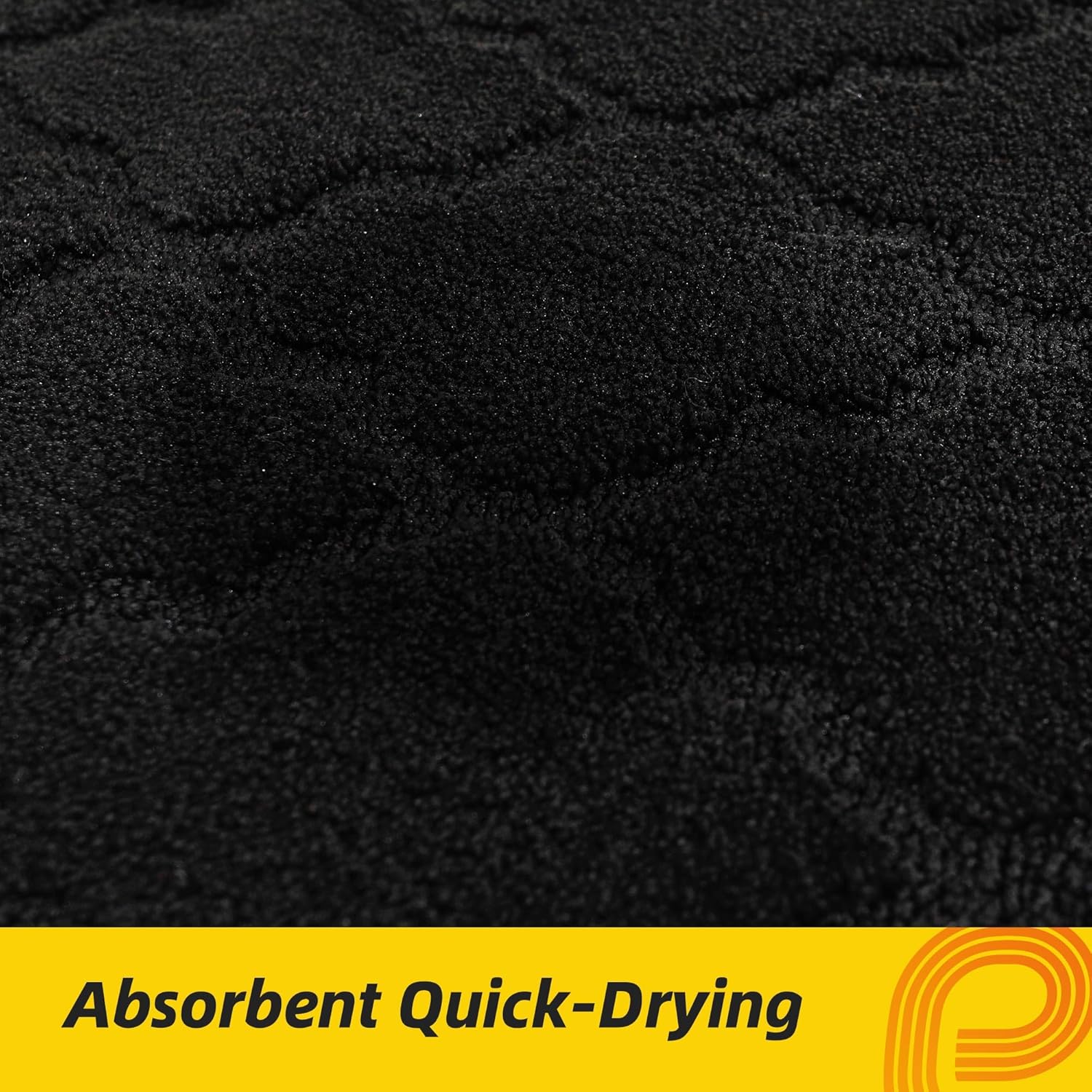 JSEI Kitchen Rugs, Non-Slip Kitchen Mats for Floor, Soft Washable Absorbent Kitchen Mats 2 Pieces, Kitchen Carpet Runner with TPR Backing, Polyester, 24”x36”+24”x60”, Black