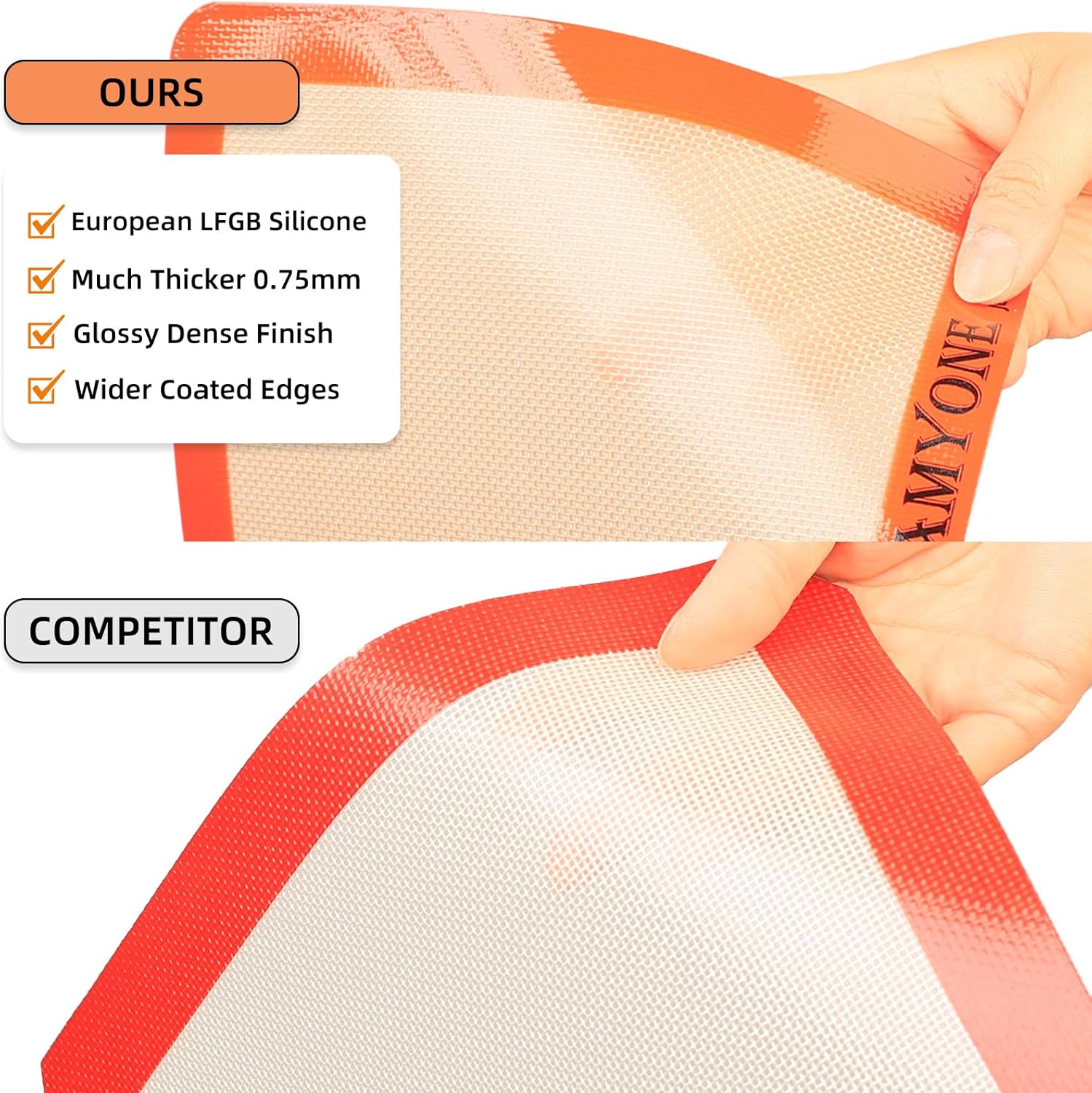 AMYONE Silicone Baking Mat for Jelly Roll Pan, Non-Stick Silicone Baking Sheet Liners Compatible with Nordic Ware Naturals Jelly Roll Pans, 2 Pcs Food Grade Baking Mats for 10 x 15-inch Swiss Roll Pan