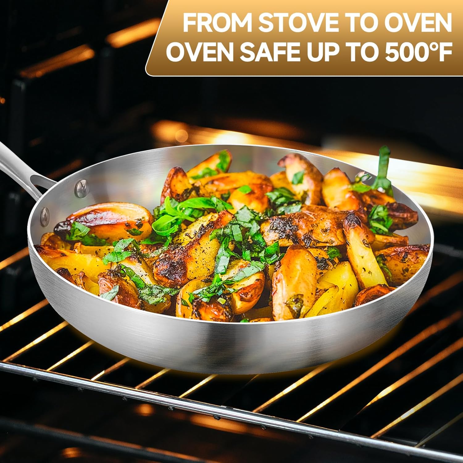 - Durable & Easy to Clean:The top-notch tri-ply clad construction makes the pan compatible with all stoves and oven-safe up to 500°F. Its durable design makes it easy to clean, and it’s dishwasher-safe for added convenience