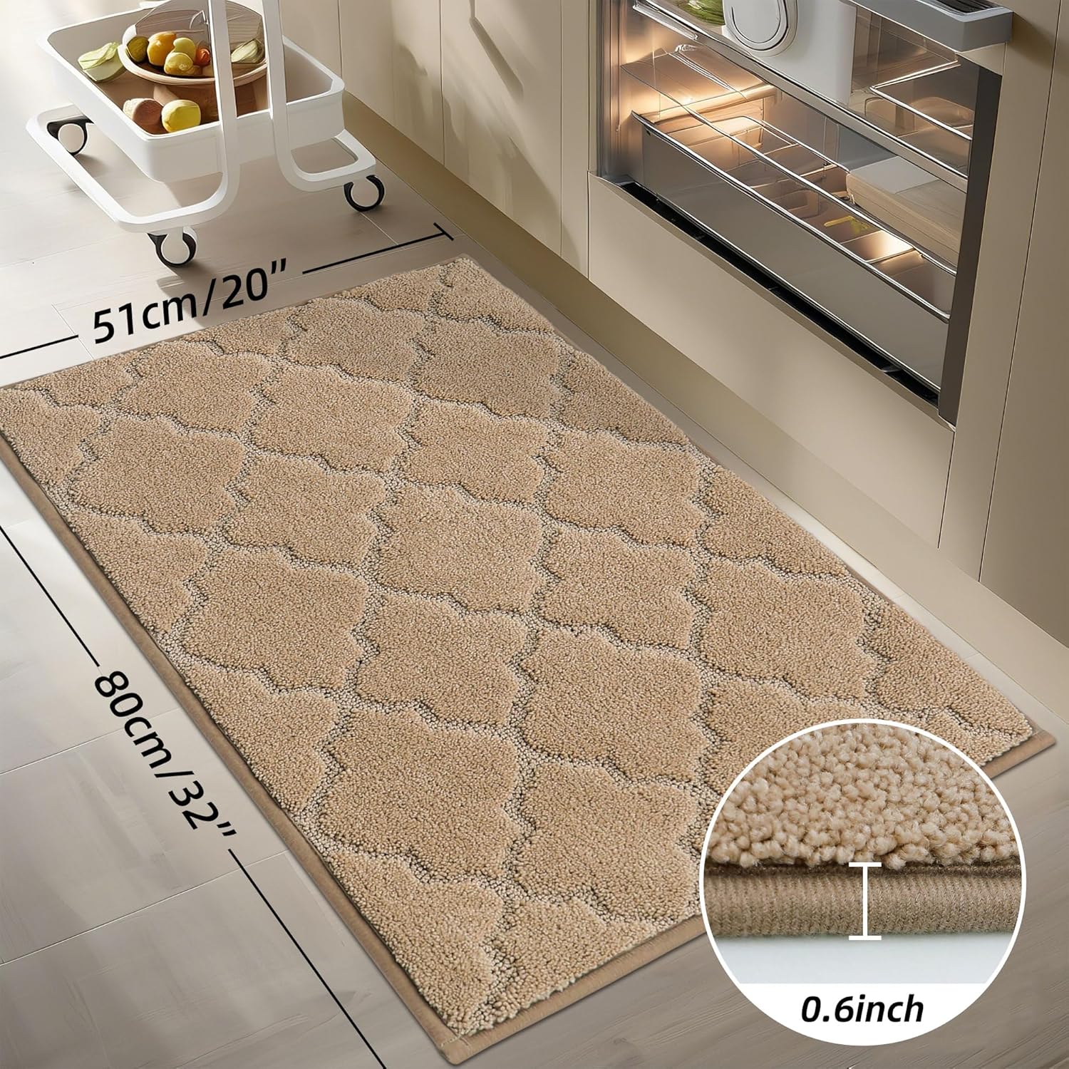 COSY HOMEER Kitchen Rugs Washable Non Slip Kitchen Mats for Floor Absorbent Kitchen Carpet 20" x 32" Soft Rugs for Kitchen,Sink Mat,Entrance,Area Rugs,Beige