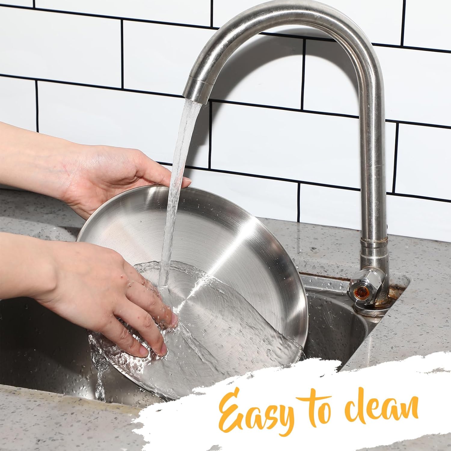 - Easy To Clean: the stainless steel pizza pan is made of quality stainless steel material, with good resistance to corrosion and rust, safe and odorless, sturdy and serviceable, which is not easy to deform or break for long term use; Stainless steel pizza crisper pan can be washed by hand, and dishwasher safe to save your cleaning time and labor; Dry pans completely after cleaning to keep shiny