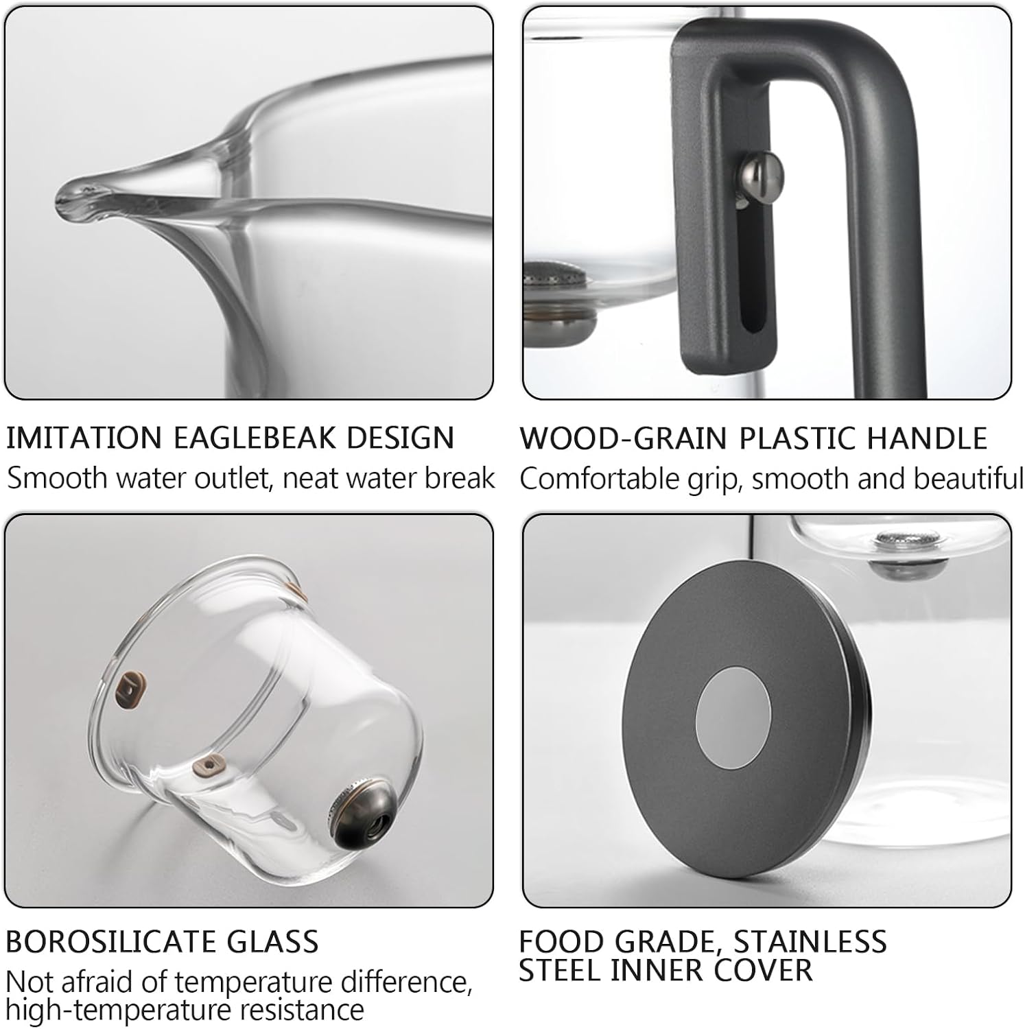 - HEAT RESISTANT: Crafted from premium borosilicate glass that withstands temperature changes and prevents cracking. Elegant high-quality, anti-scald wood-grain plastic handle. The thoughtfully designed lid helps maintain the optimal brewing temperature